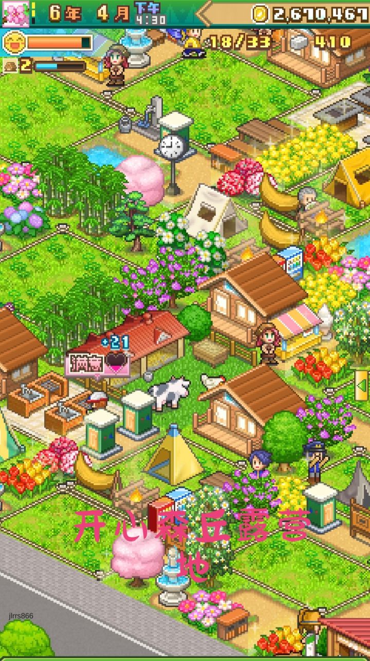 大家好!我设计的开心森丘露营地以“自然与便利共存”为核心理念~ -布局亮点 1. 资源分配:重点打造了“露营区”和“餐饮区”,商店紧邻入口方便游客采购,采用9:15的黄金比例布局,既美观又提升点餐效率! 2. 功能分区:营地分为休闲区(帐篷+篝火)、景观区(花田+小径)和商业区(商店+绿植),确保收益与美观平衡。 3. 细节设计:用绿植隔断减少设施间的视觉冲突,搭配25:9的步道宽度