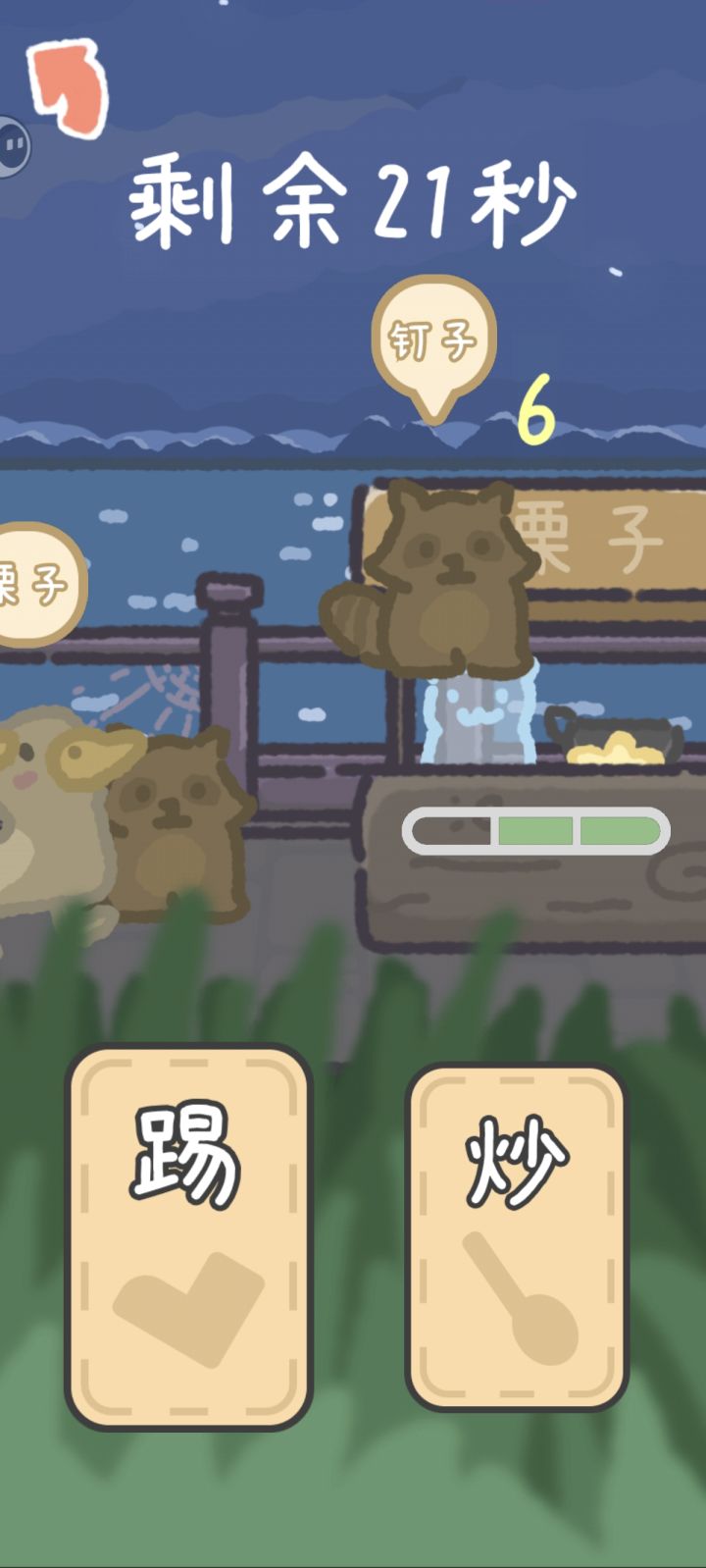 游戏本体还是挺可爱的,玩法上感觉还可以更丰富一下,比如增添一些炒栗的手法(比如大中小袋栗子对应不同的点击次数之类)、普通捣乱客人白嫖栗子,特殊捣乱客人扣钱之类的,或者多次全对进入fever状态,fever时间内所有单子加10%收益之类的,祝越来越好~