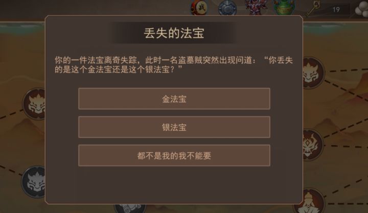 在《掌中三国》中,宝藏副本比较好玩也比较重要,是一个闯关小游戏,里面有很多条路线,每过一关都会得到宝箱,第五层通关有概率直接拿到红色麻将。在宝藏路上会遇到很多随机事件,你的选择直接影响到收获哦。比如当你碰到“丢失法宝事件”,会有一个盗墓贼问你:你丢失的是这个金法宝,还是这个银法宝?下面会有三个选项:1金法宝、2银法宝、3都不是我的我不能要。你会选哪个呢?第九期论坛抽奖活动活动时间:2025.