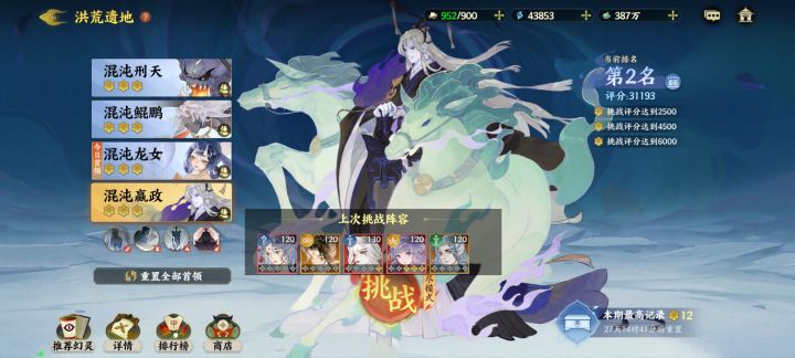 选用上面的阵容通杀三个boss,第一个boss需要先打小怪,其他的无脑打就行了,非常简单。然后是蓬莱依旧采用之前的打法,也可以使用化识三