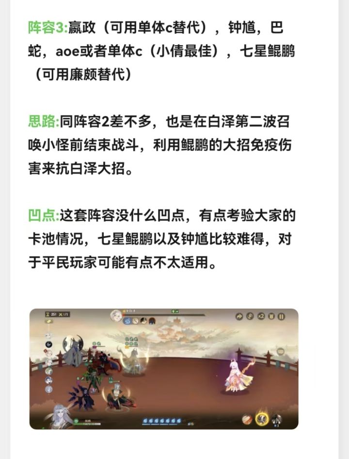 本人零氪,今天终于过了可喜可乐,给零氪玩家一些攻略,首先阵容如图(西施可以换貔貅,巴蛇或者其他的单体都可以),核心是两个禁疗,由于我是零氪,资源不多,所以带的是谛听(至少5星)和北狄(我的天命都没点,最好把百分百禁疗点了),谛听速度大于120(要比孟婆快),北狄速度小于120(比孟婆慢就行),两人轮番给孟婆禁疗,先把孟婆处理再处理钟馗,输出全程用单体攻击打孟婆,嫦娥(至少5星)的大招