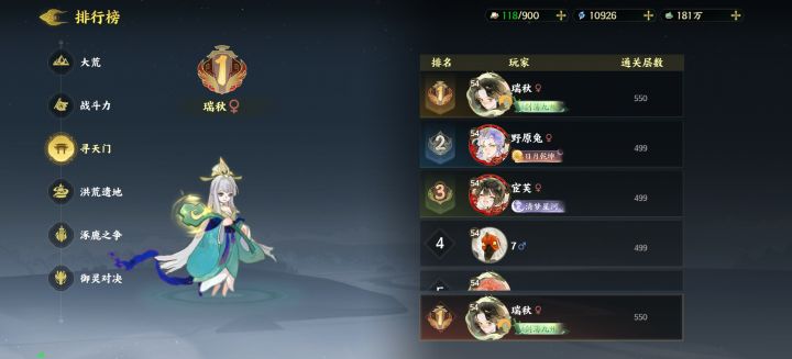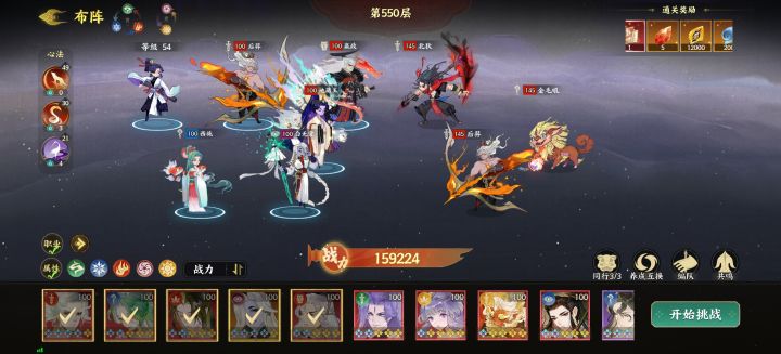 有难度的是500层,需要技巧。好像是不能让炎系打最后一击,不然白素贞复活回两次血。用其他系最后一击,白素贞复活回一次血5万多,在白素贞叠满9层被动前打完就可以了,白素贞打人和挨打都加被动要注意。这层带太乙真人。结尾附一个500层阵容图。其他都是数值一力破万法。能挂机就挂机(对面输出少就可以挂机,否则手动)配置:后羿(攻暴),嬴政(速生命),地藏王(守护生命),西施(速度命中偏攻击),白无常(速