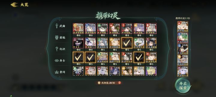 让大家久等了,关于今天新开的玩法墟海洄渊经过我仔细的研究,开辟了一条完美的航线,现在就让我们来看看怎么航行这片海域 #游戏攻略 #游戏日常 开局选人思路 开局可以选五个角色上阵,但有一个统御值机制 携带幻#灵初始不能超过30点,所以我的思路就是携带一个红卡主力c配四个金卡 选人的职业方面推荐五个职业各来一个幻灵,也可以携带俩个素问以防boos难度过高卡关 玩法介绍 进入玩法后 我们