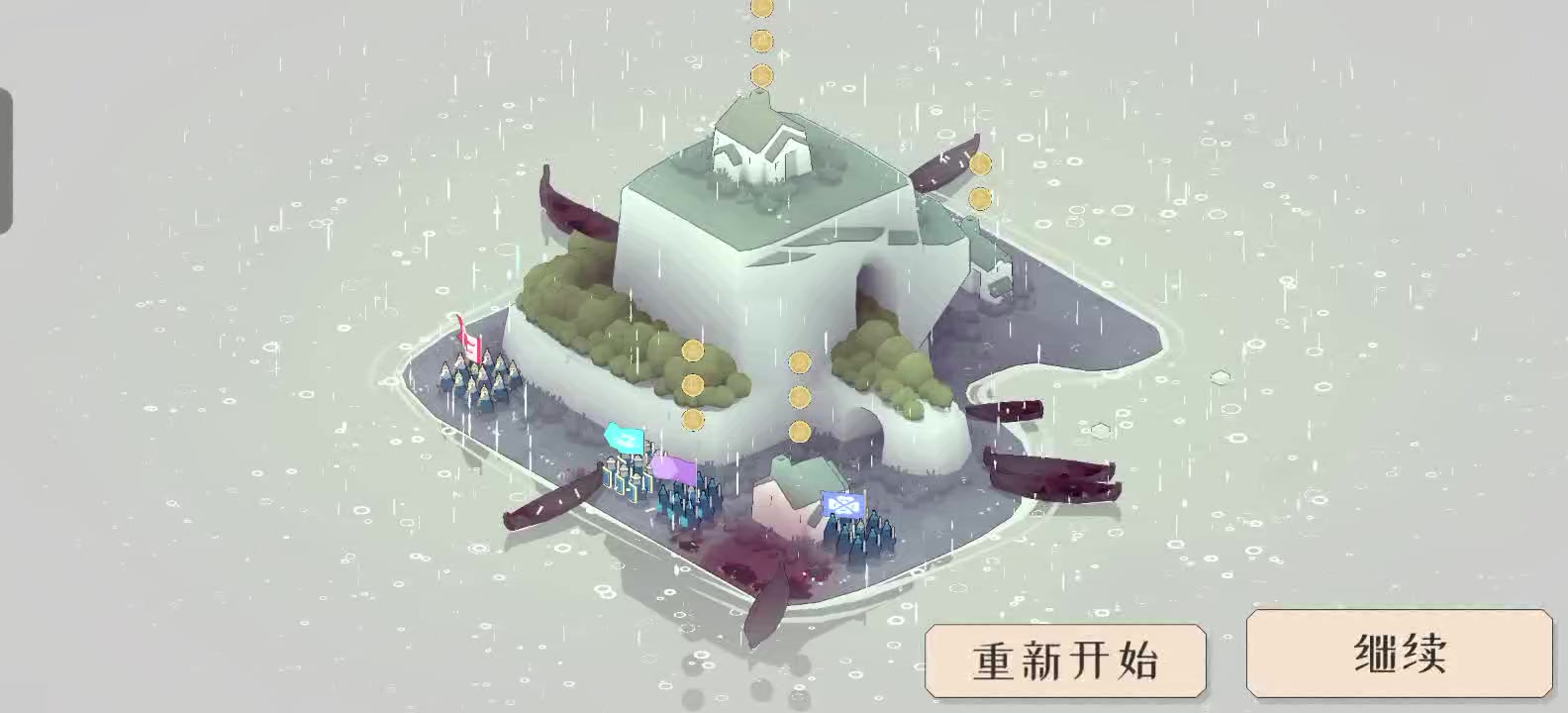 只剩下一个将军的时候让他上船走,结果有两个敌方的上去追他,上船后打不了,结果他们上同一条船走了,打完后就一直结算不了,就看着,游戏把这种情况划分为没打完,白打一把