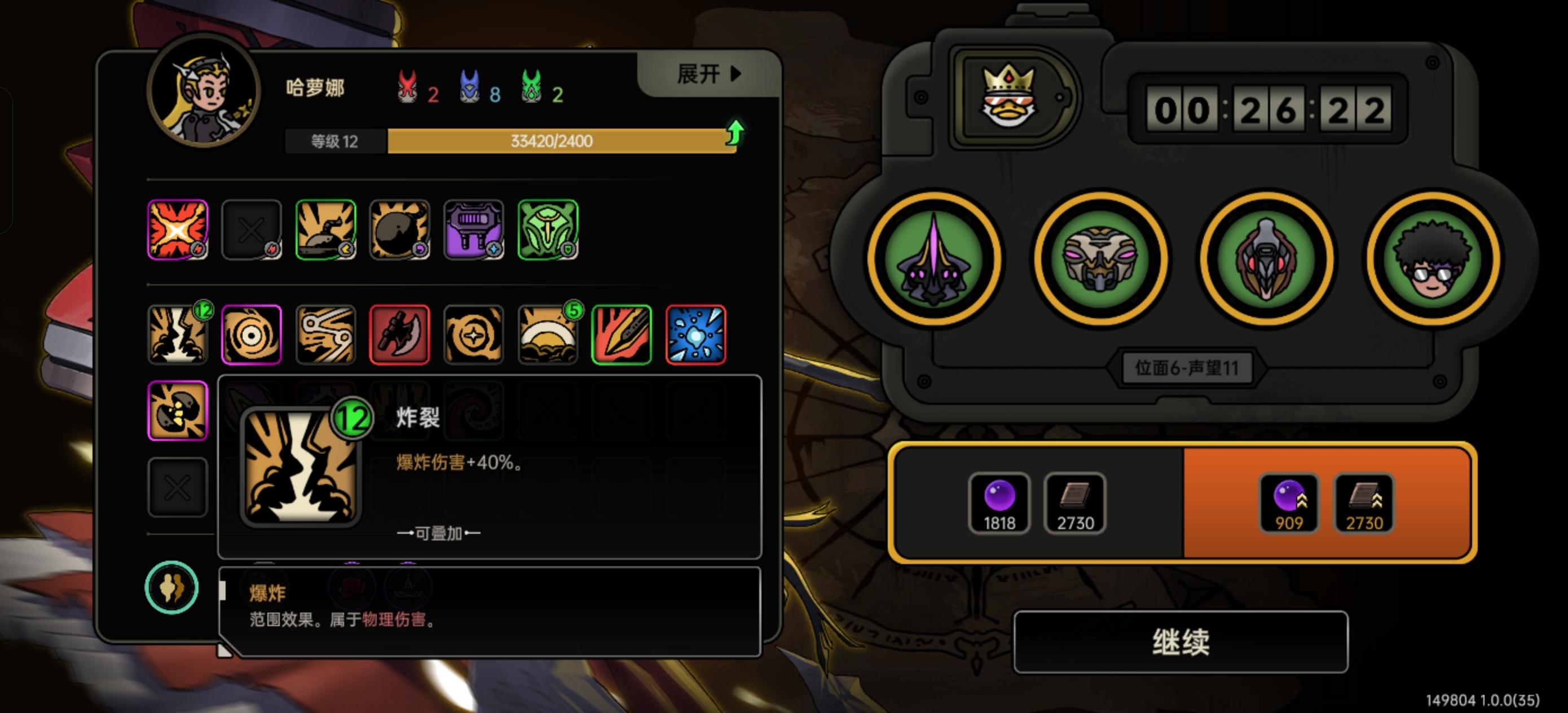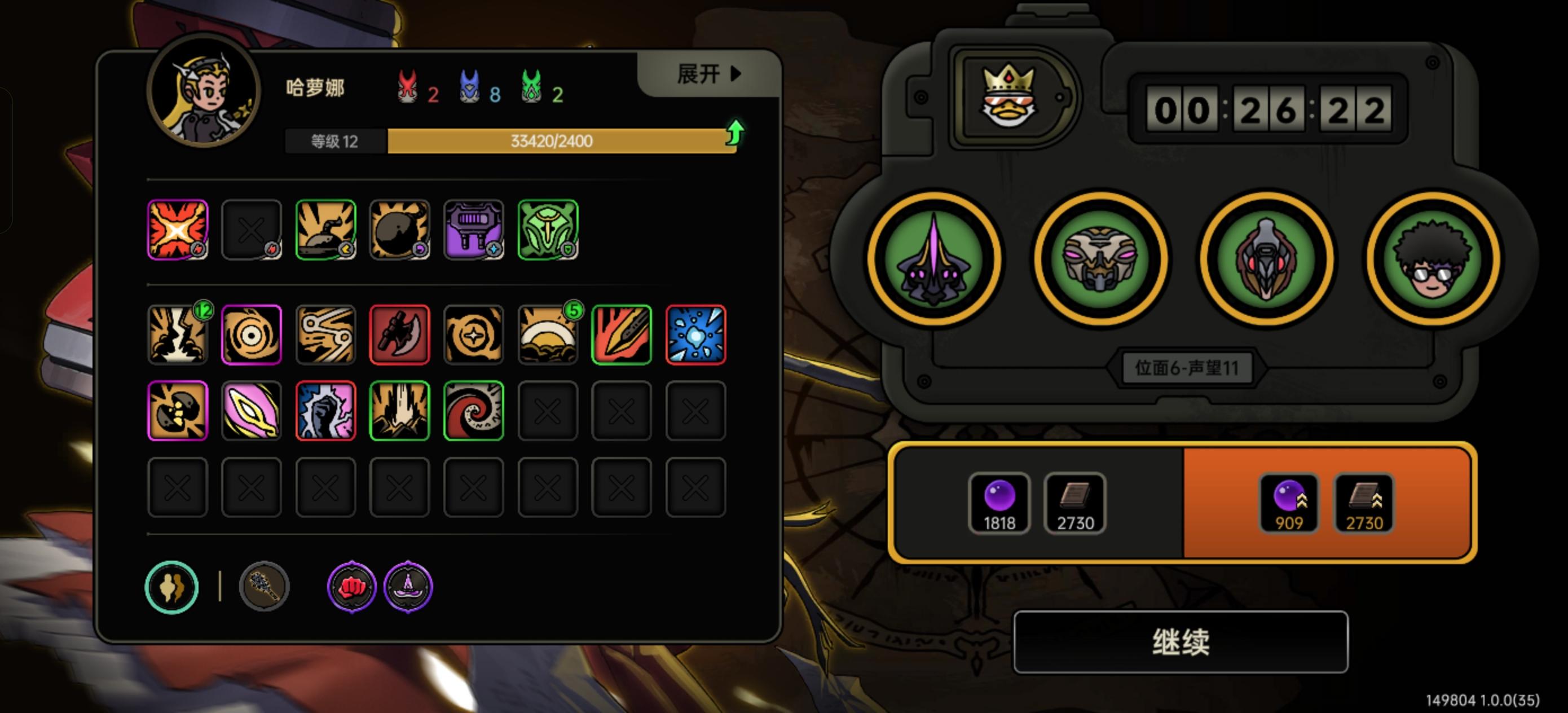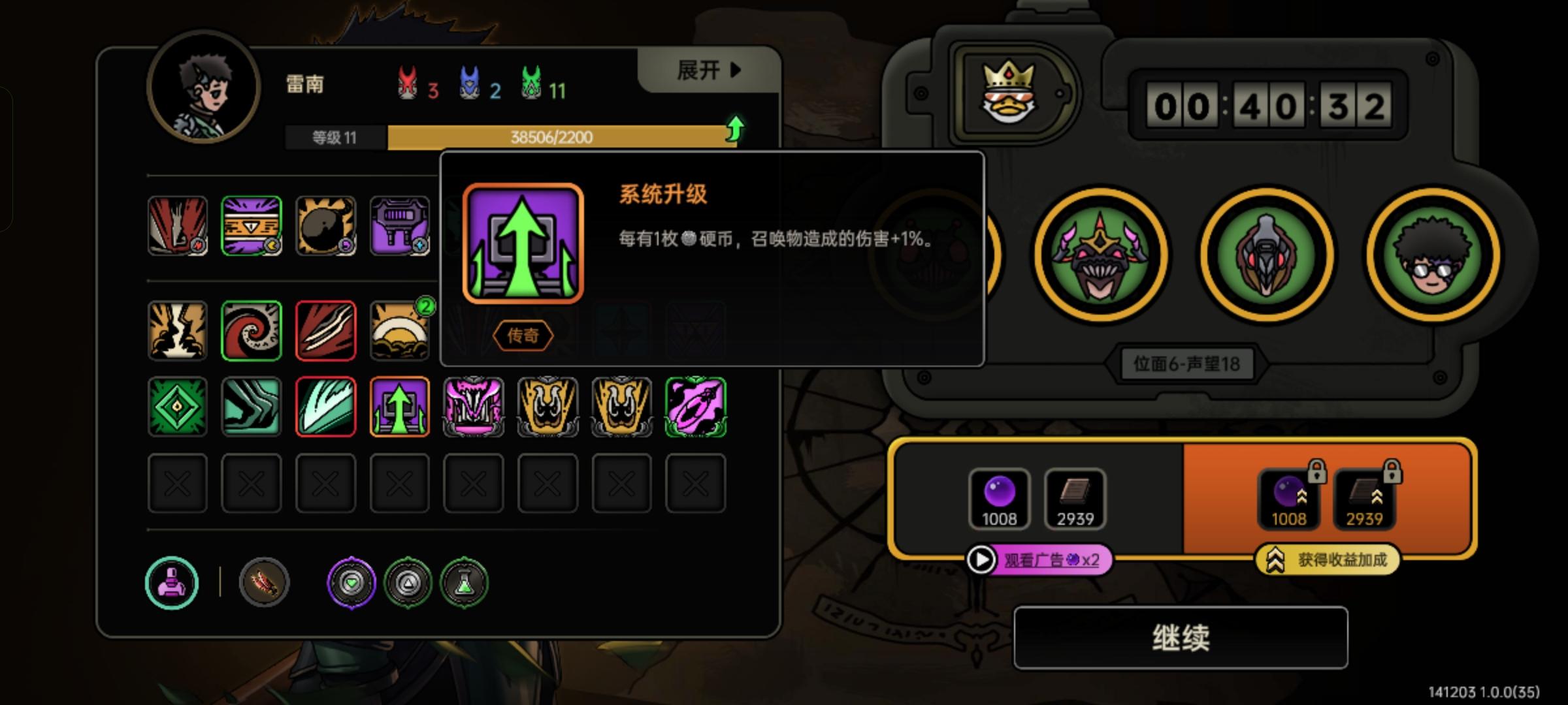 首先,把飞羽禁用掉。防止刷出来忍不住选导致打boss很卡。 然后徽章选择溢出血量恢复加钱,和进去商店关卡加40%钱的,选关有商店进商店,只买刚需和有用的,不刷新,药瓶也可以买,不满血喝了钱更多,主选绿牙加恢复和生命上限的这俩。前面的钱省着点用,最后一关前的boss一次性买完东西。 前面出毒选毒出召唤选召唤,啥都没有就普攻系的,因为拿到那个普攻连携也可以机器人触发。 然后就是各种增伤易伤。 当然