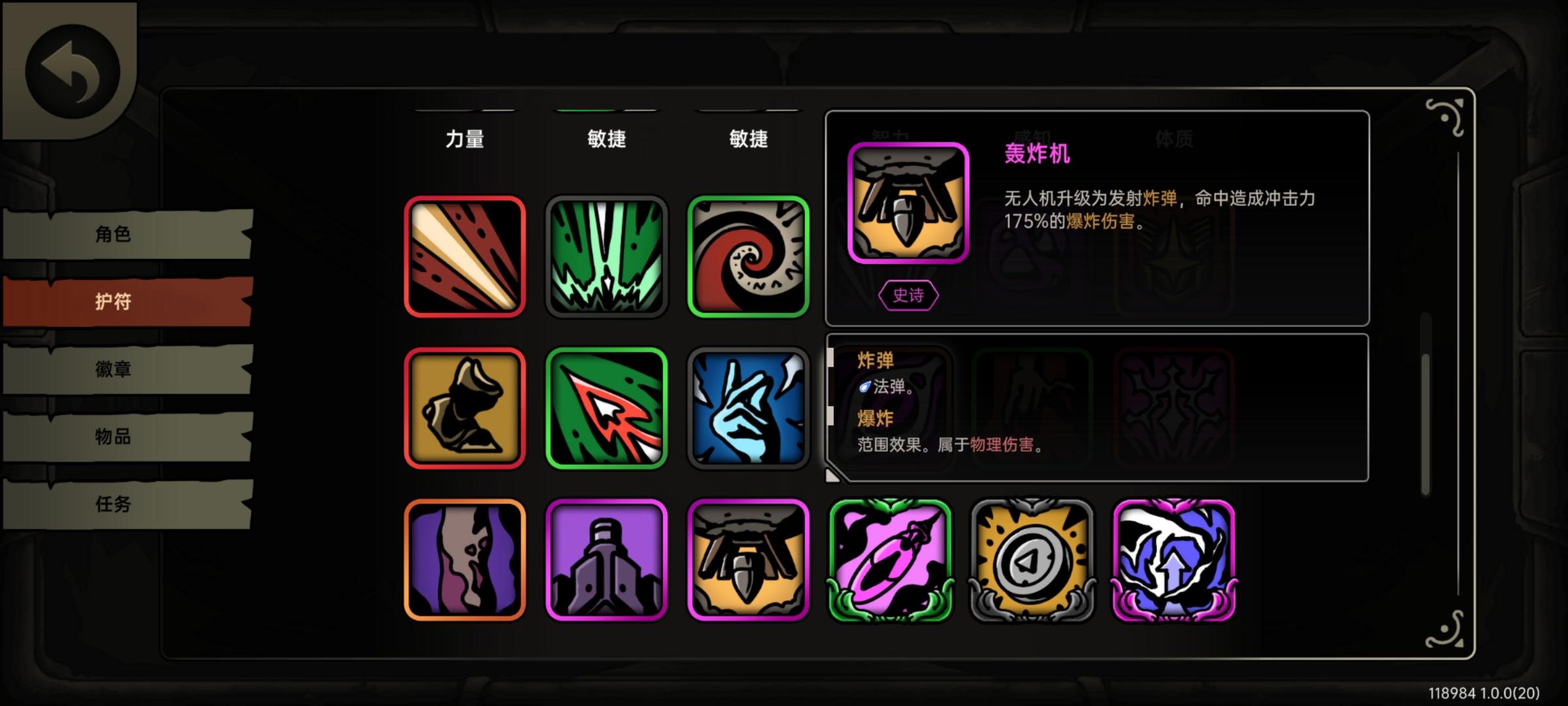 第一张地图获得的无人机徽章,智力徽章获得的无人机从第三关下水道开始失灵,第四关打六章超越者全程没用,敏捷徽章获得的无人机在下水道也没用,但是在第四关能用,有没有大佬知道这是为什么? 图片里的轰炸机加成也只能作用在敏捷徽章的一个无人机上面,剩下三个还是原样