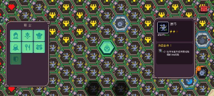 这游戏对于技能升级职业解锁的新手教程可以说等于没交举个栗子🌰炸弹兵解锁条件是范围拾取技能要2级技能图标是6边形的,想要技能升级你就要用对应的升级条件放在你要升级的技能边上,把技能围起来,这样才能升级你要的技能