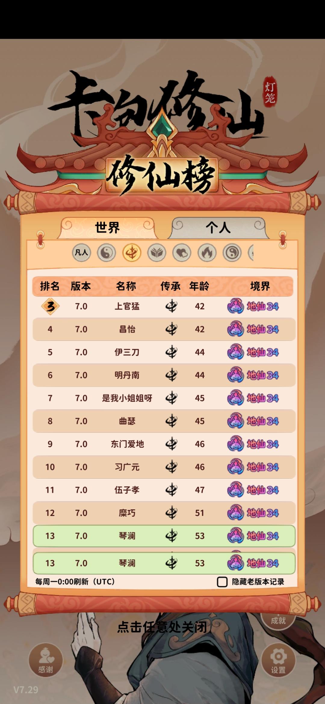 有点不太懂,一开始以为是不参与排名的,比如不死长生,老早以前有个130岁通关的,卸载之后数据没了,最近回游,再咋努力最好的成绩也只是180,但是个人排行榜居然没有这个数据,而且任何数据都没有,但是在世界排行就能看出今天刚玩的216,点开个人又发现啥都没有。其他榜单倒是没这个问题,但是看p3p4,蜀剑个人最高是41,世界排行记录的数据是53。合欢也差不多。。鬼谷玩的比较少,为了成就就玩了一次,个人
