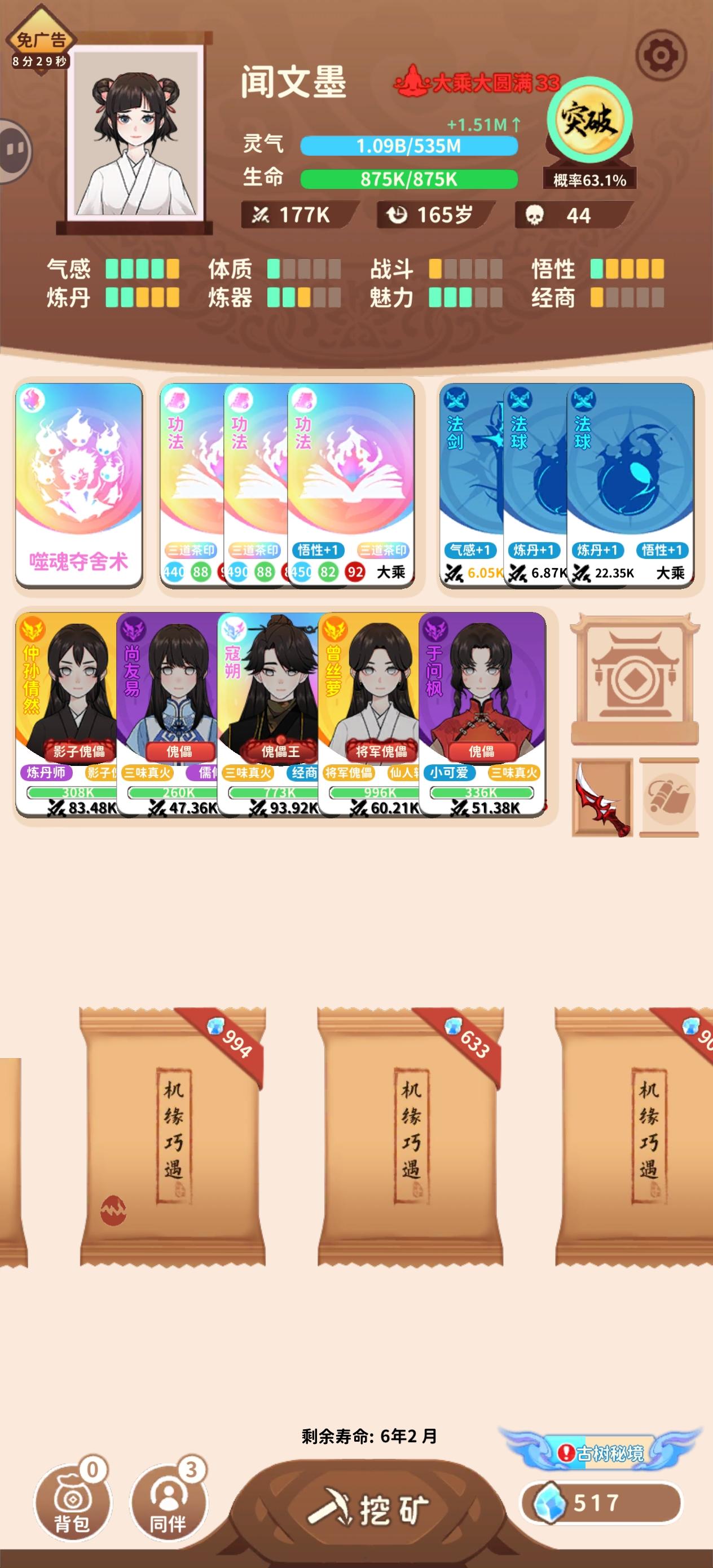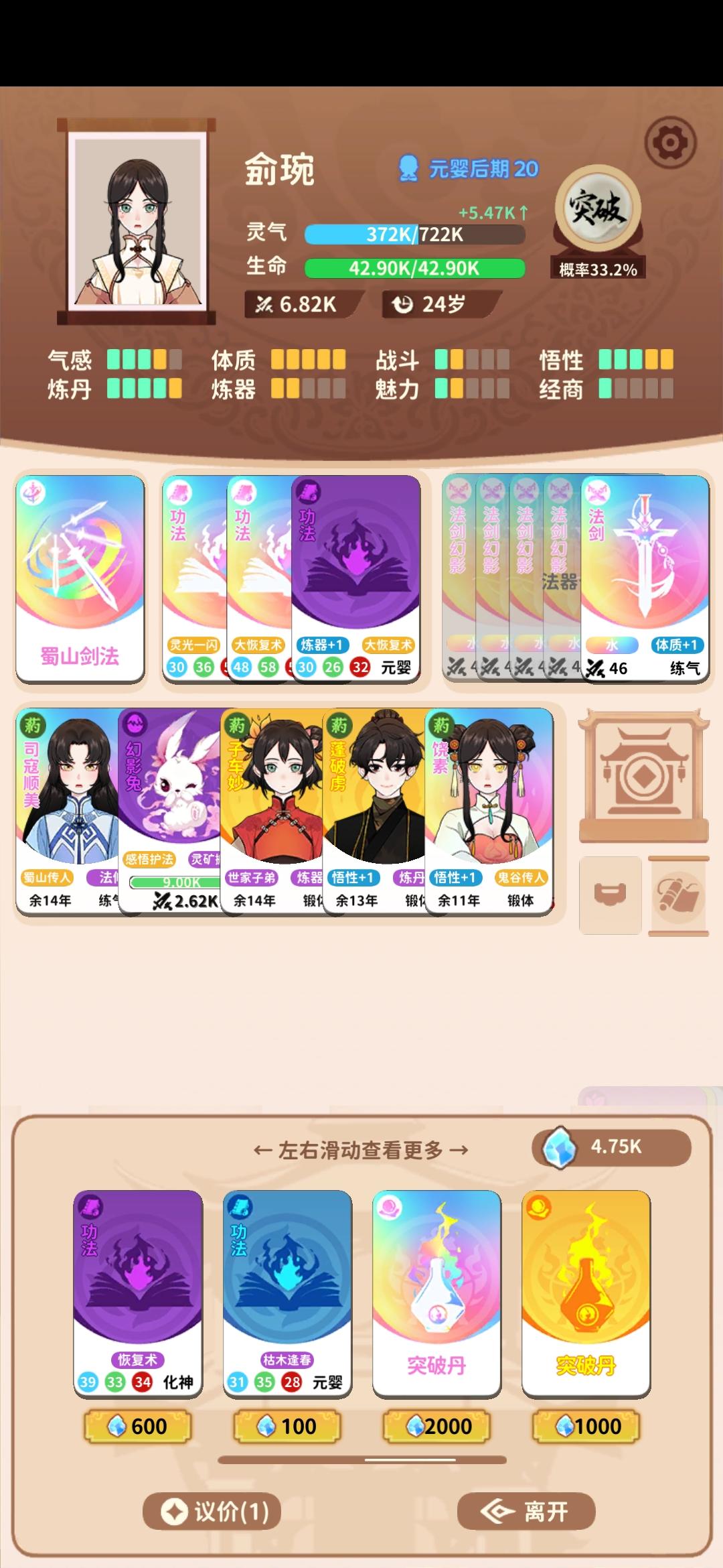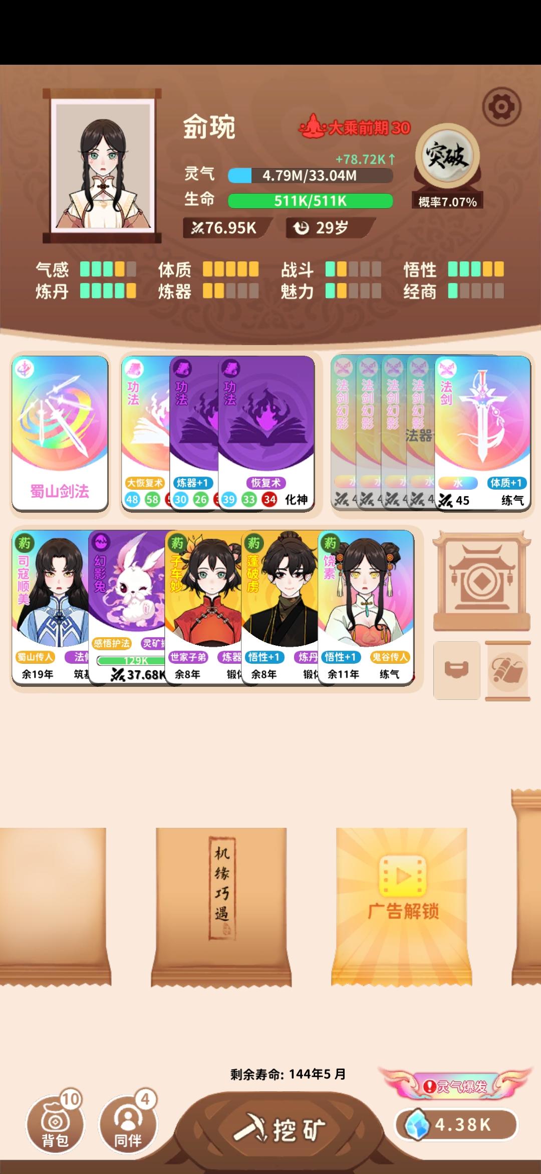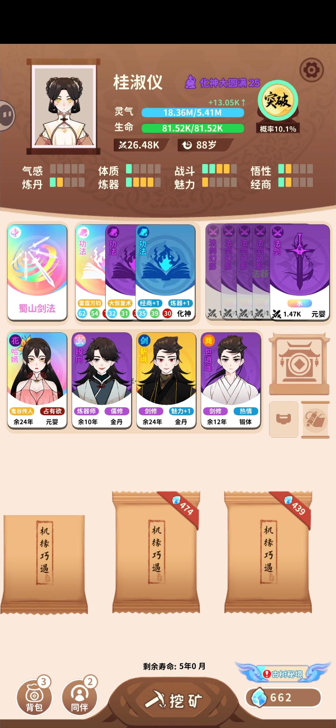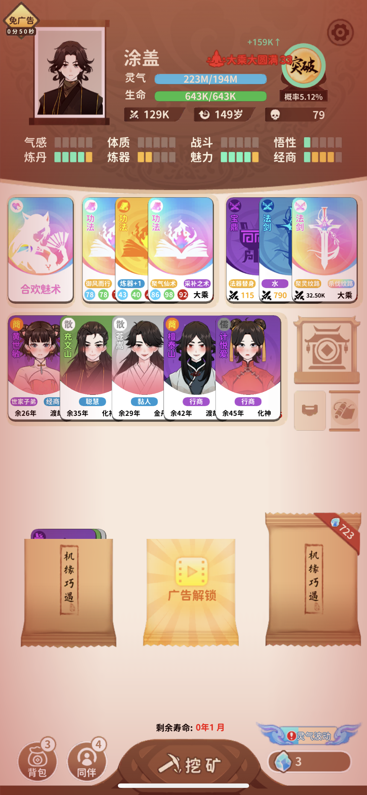 #合欢宗 #卡包修仙TapTap测试版 兄弟们,合欢宗才是真正的T0。 优先加点:天道里的财富、寿命。天赋里的资质、功法、同伴(增加功法同伴位置以及刷魅力)。传承里的天络(用来买同伴)。 财富是用来挖矿攒钱以及过卡,寿命是提升前期的容错率。 重点是这个天络,这个就是用来买同伴的,没错,1级的天络开卡可以直接1000买3个队友,同伴不够了直接开带有天络标记的卡包买同伴就完事了。