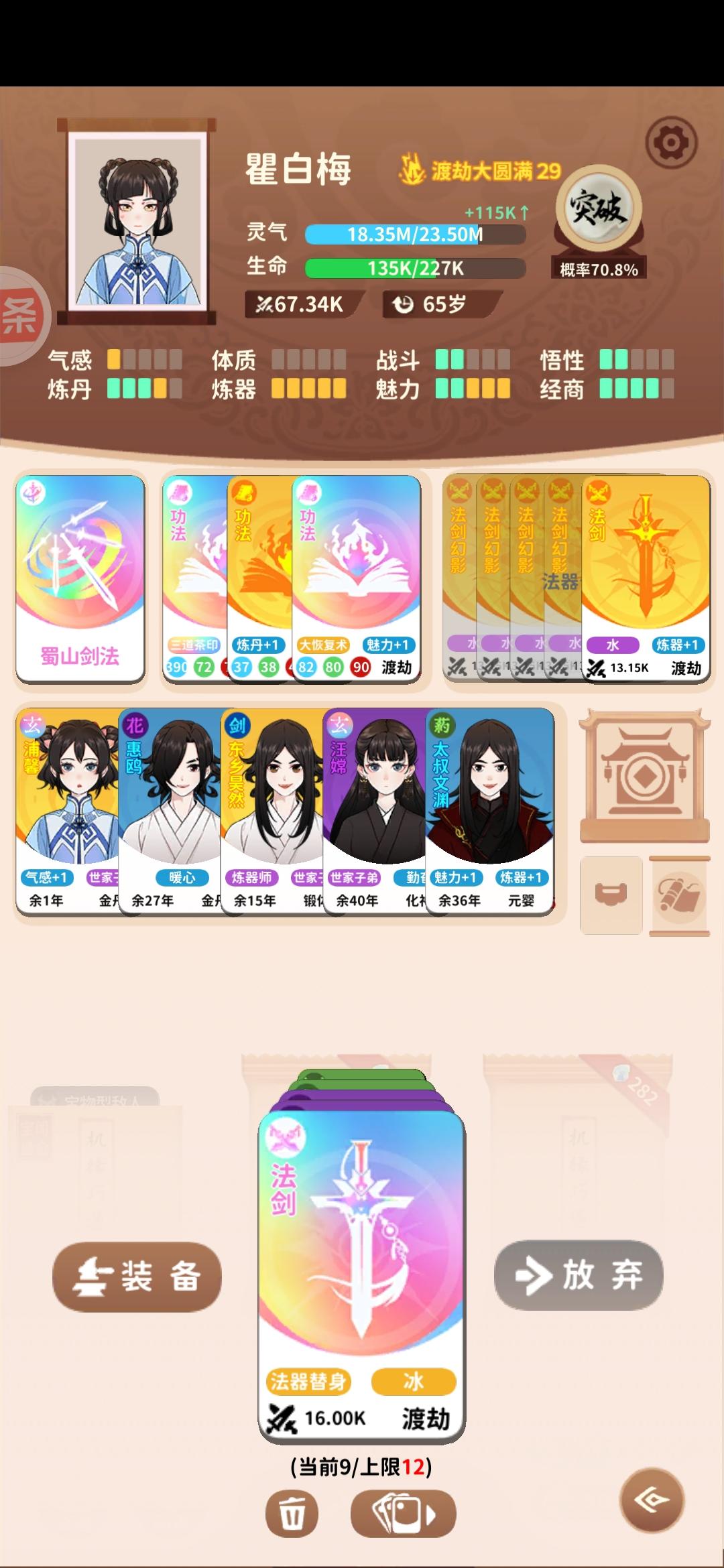 rt,开局用到化神,太能控了,缺点是修炼太慢,所以换了水剑,死了一次渡劫又换回冰。这把没碰到彩水剑,功法也没开出冰天雪地,伙伴蜀剑传人很快死了,但理论上来说 冰天雪地+冰剑+蜀剑不说无敌,起码是无伤+少伤通关的。封禁红怪也不怕。水剑恢复可以,但突破太快就得换,冰剑这块可以,不用老换来换去,但灵气获得太少,三茶+浴血也不多。彩水剑不必多说yyds,这把运气太差,随到彩剑的时候没钱了