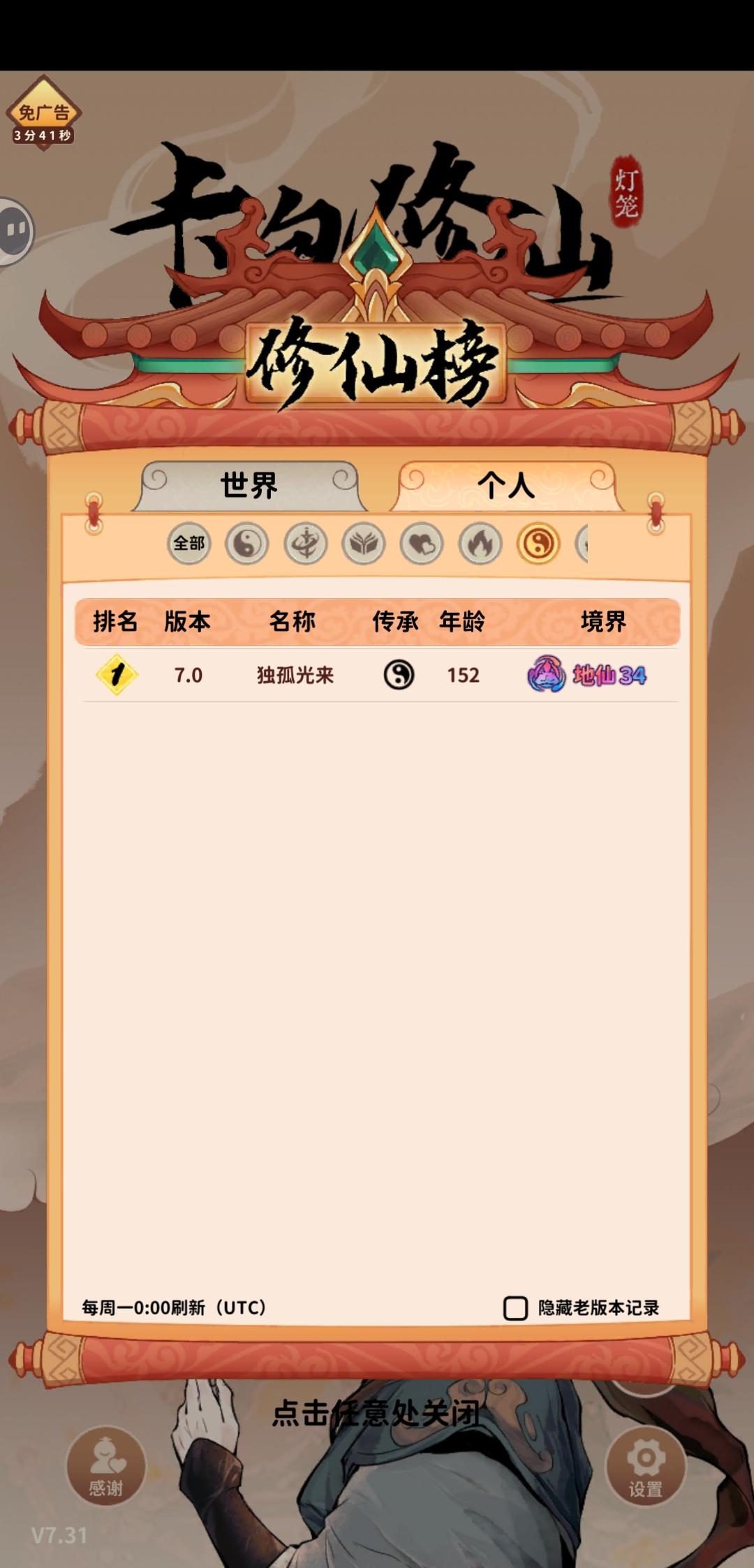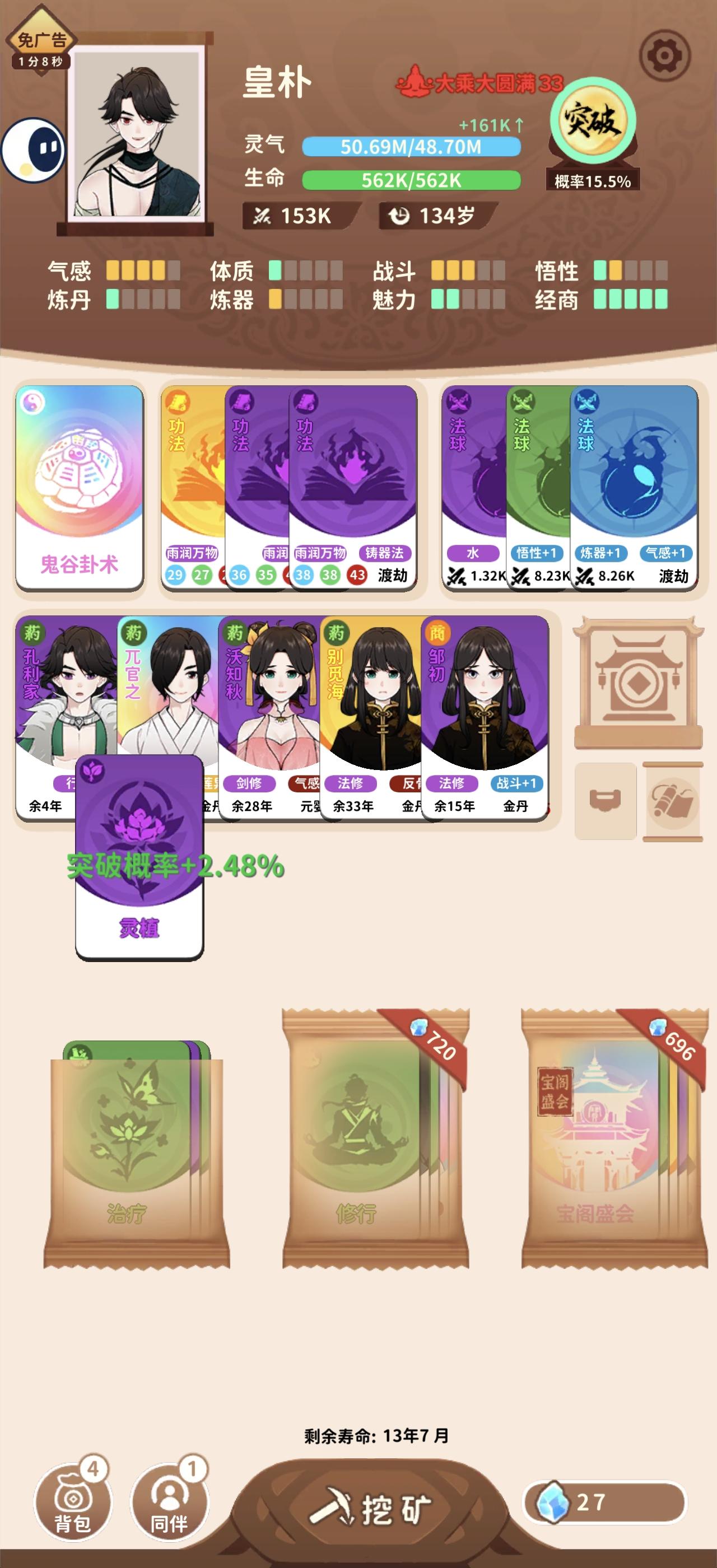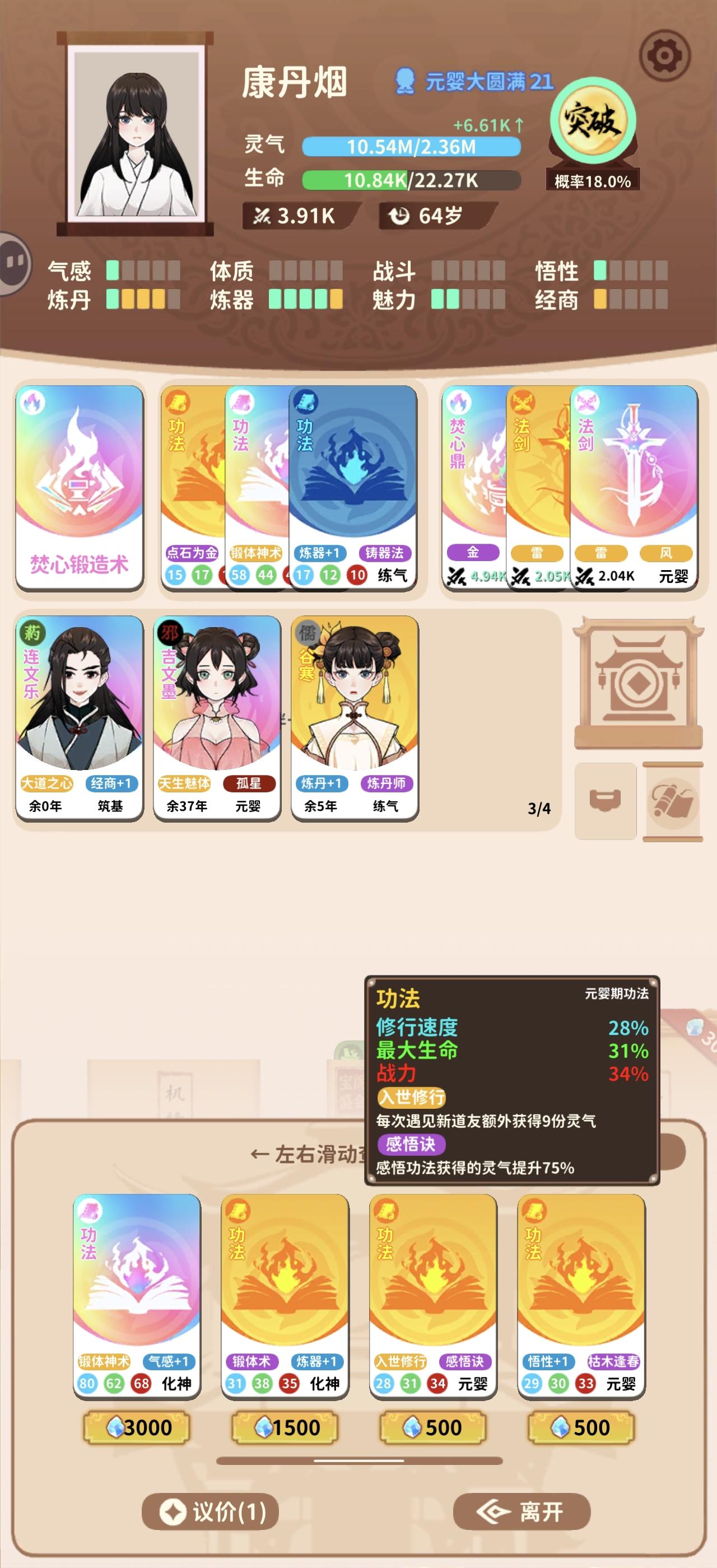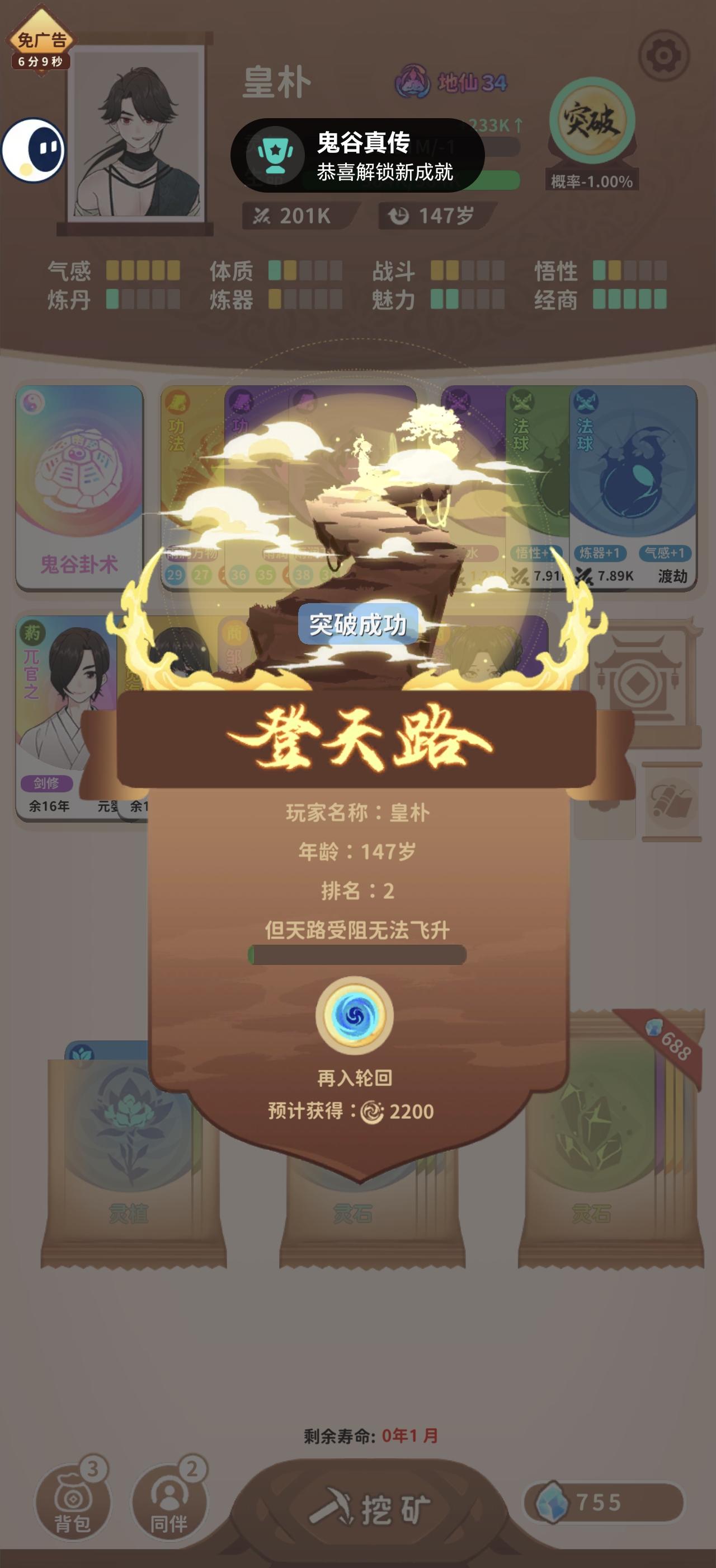 一个同伴成地仙了,我看这个人显示地仙再点了几下挖矿,就变成法剑飞我背包里了,看了一下日志,又提升了一个境界,应该是成天仙了。