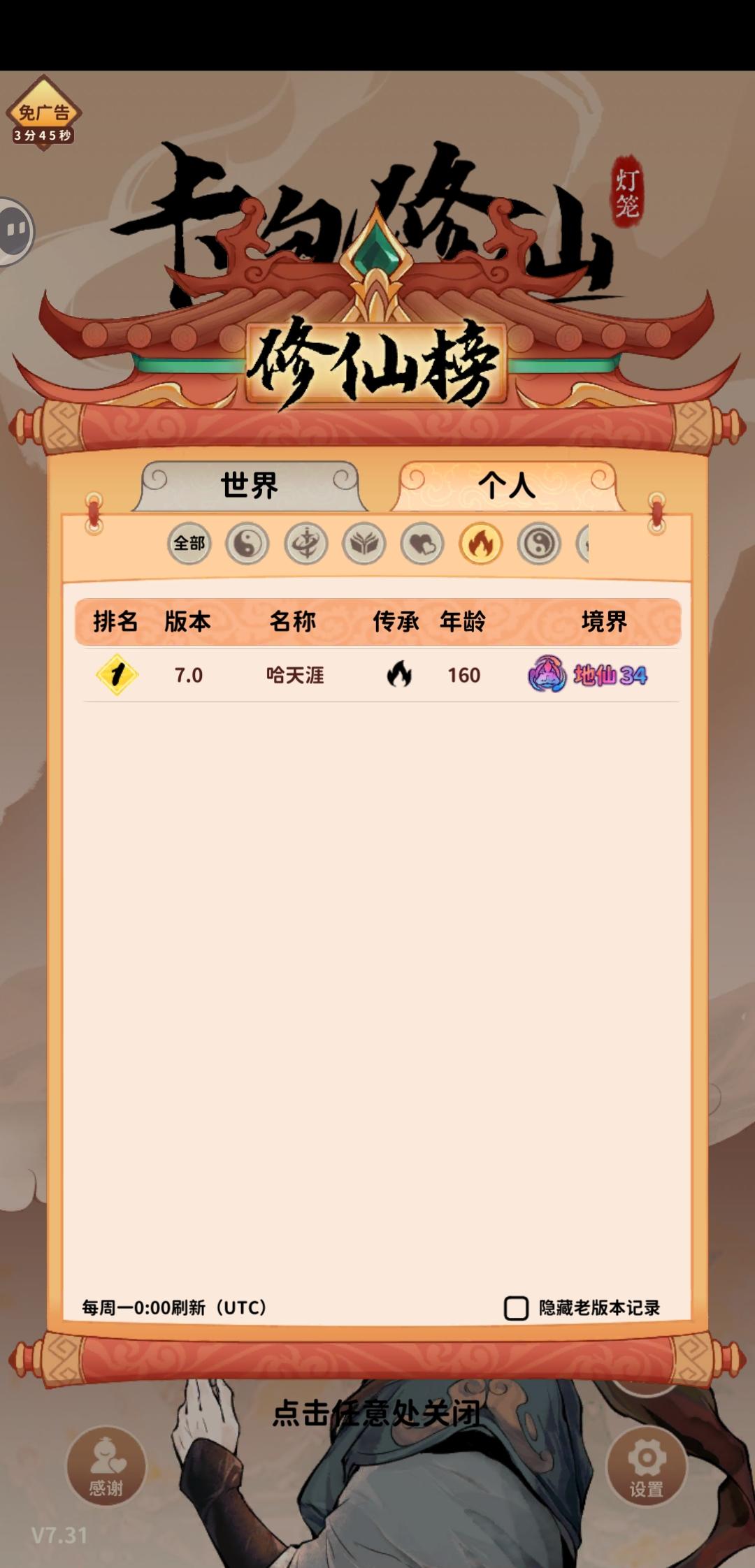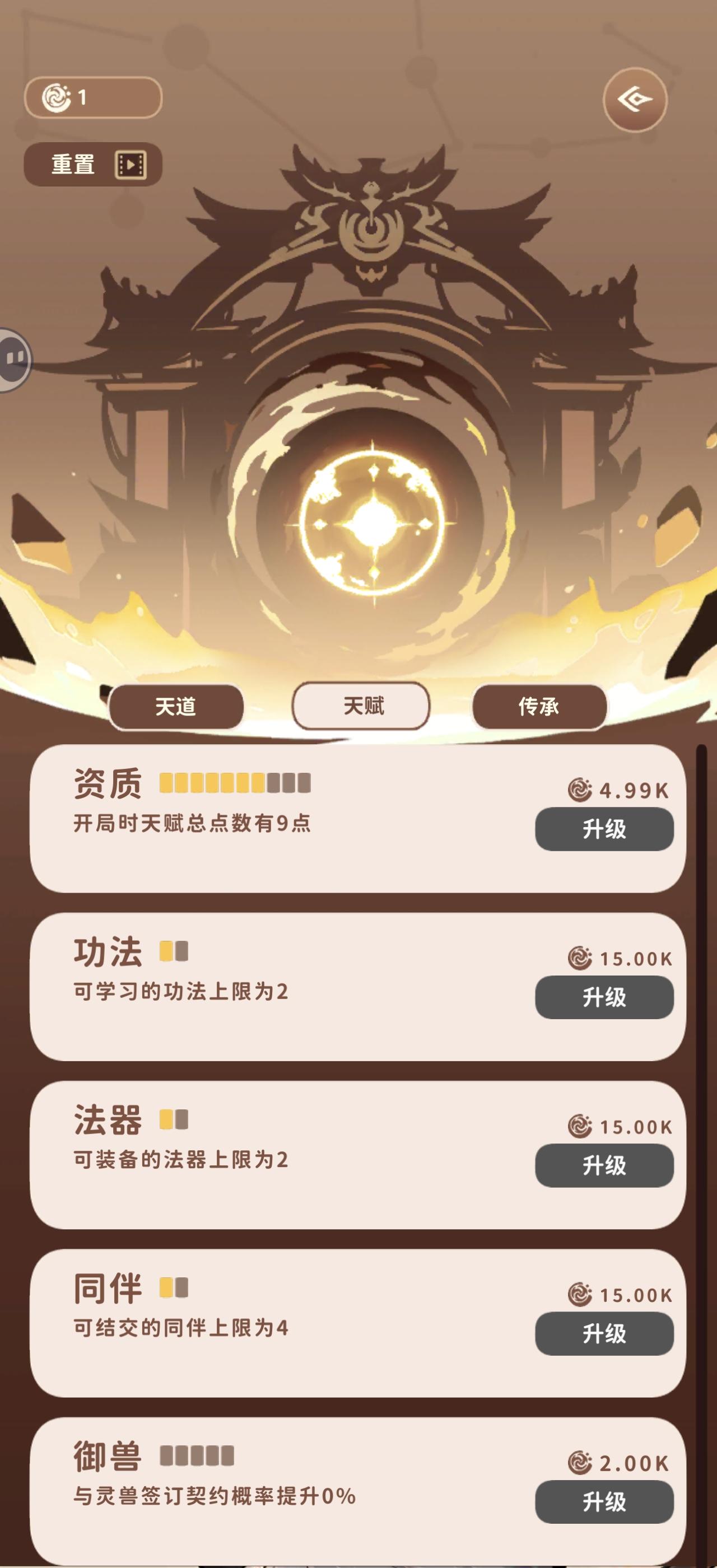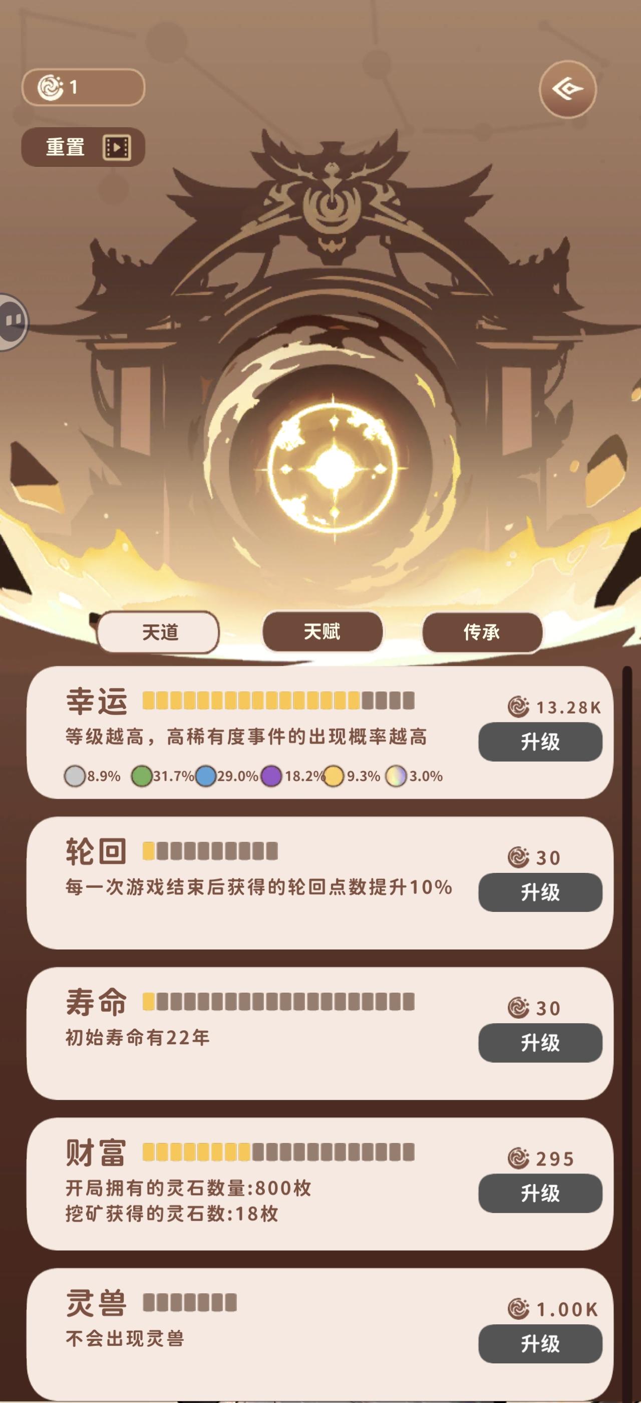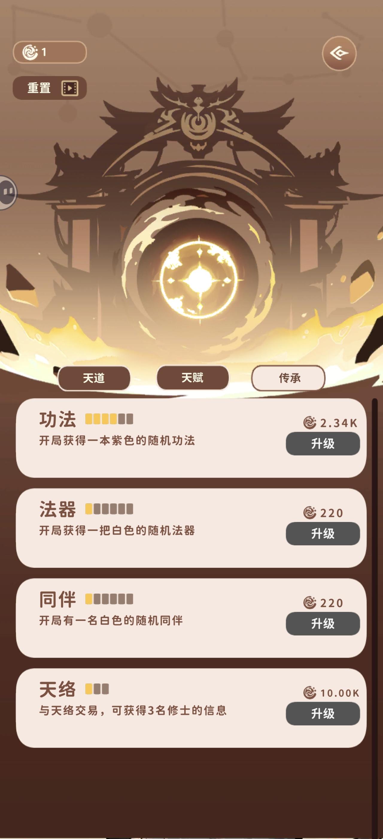 把传承的功法点上随机出锻体术,点点概率和寿命,我用秒表记录时间是五分钟左右到达化神,运气差点只有初期运气好点有圆满,十多分钟地仙