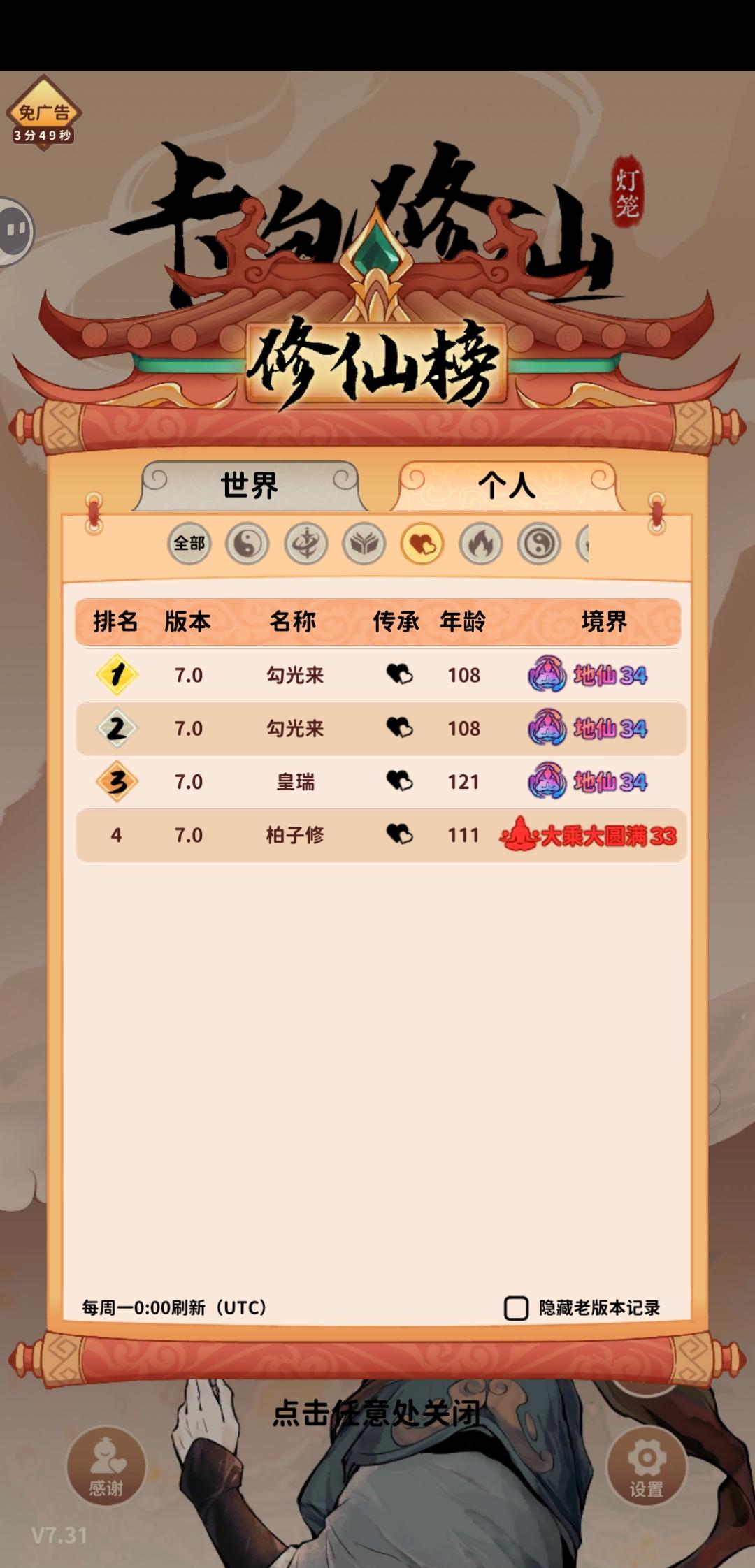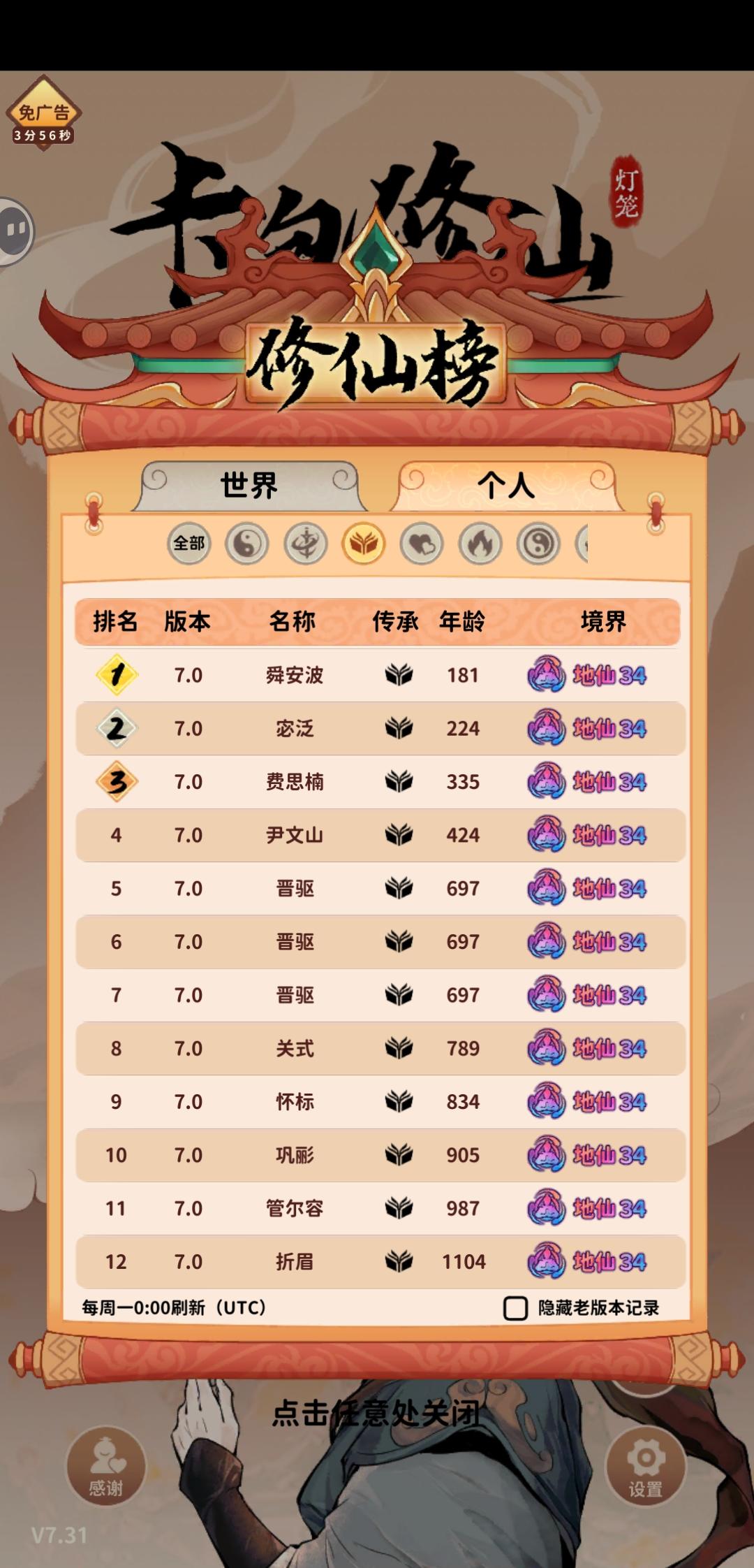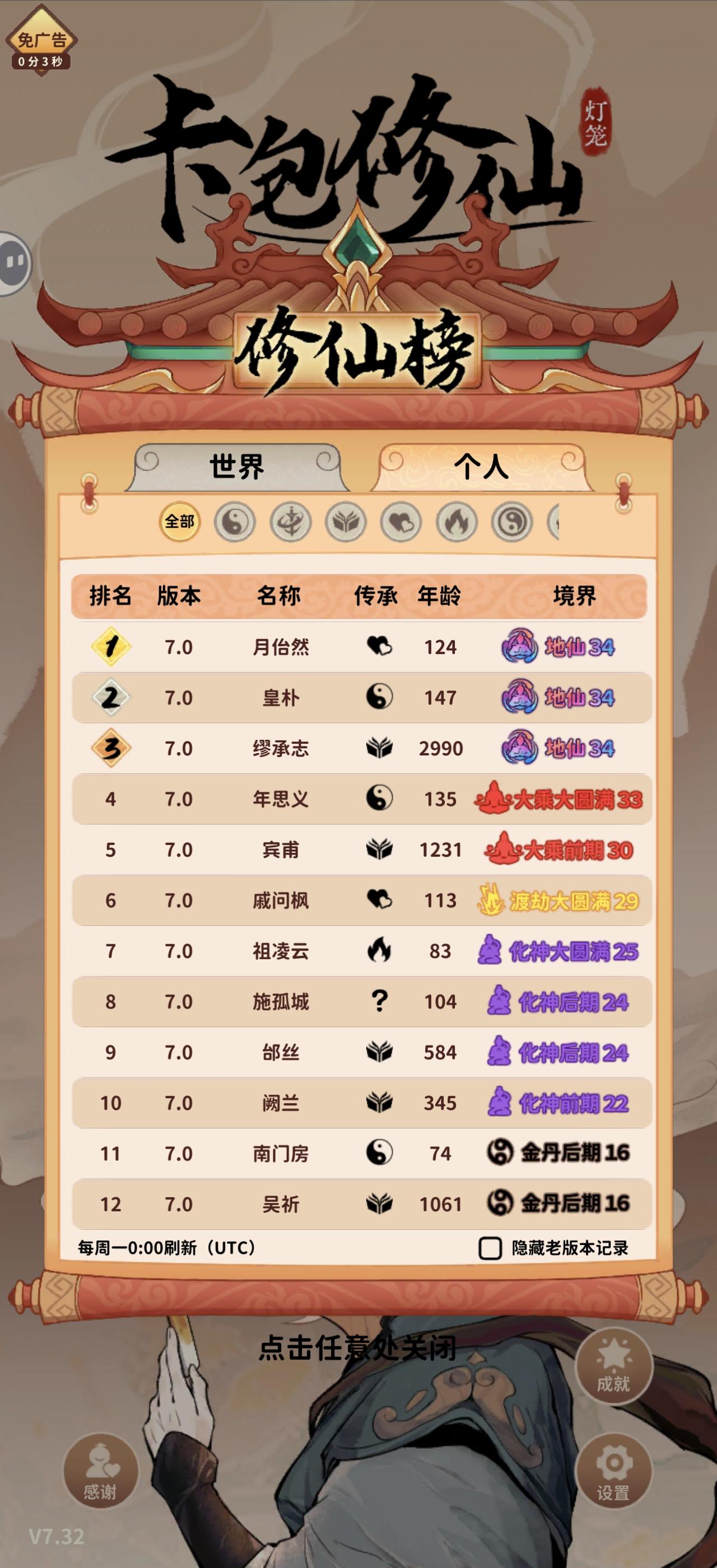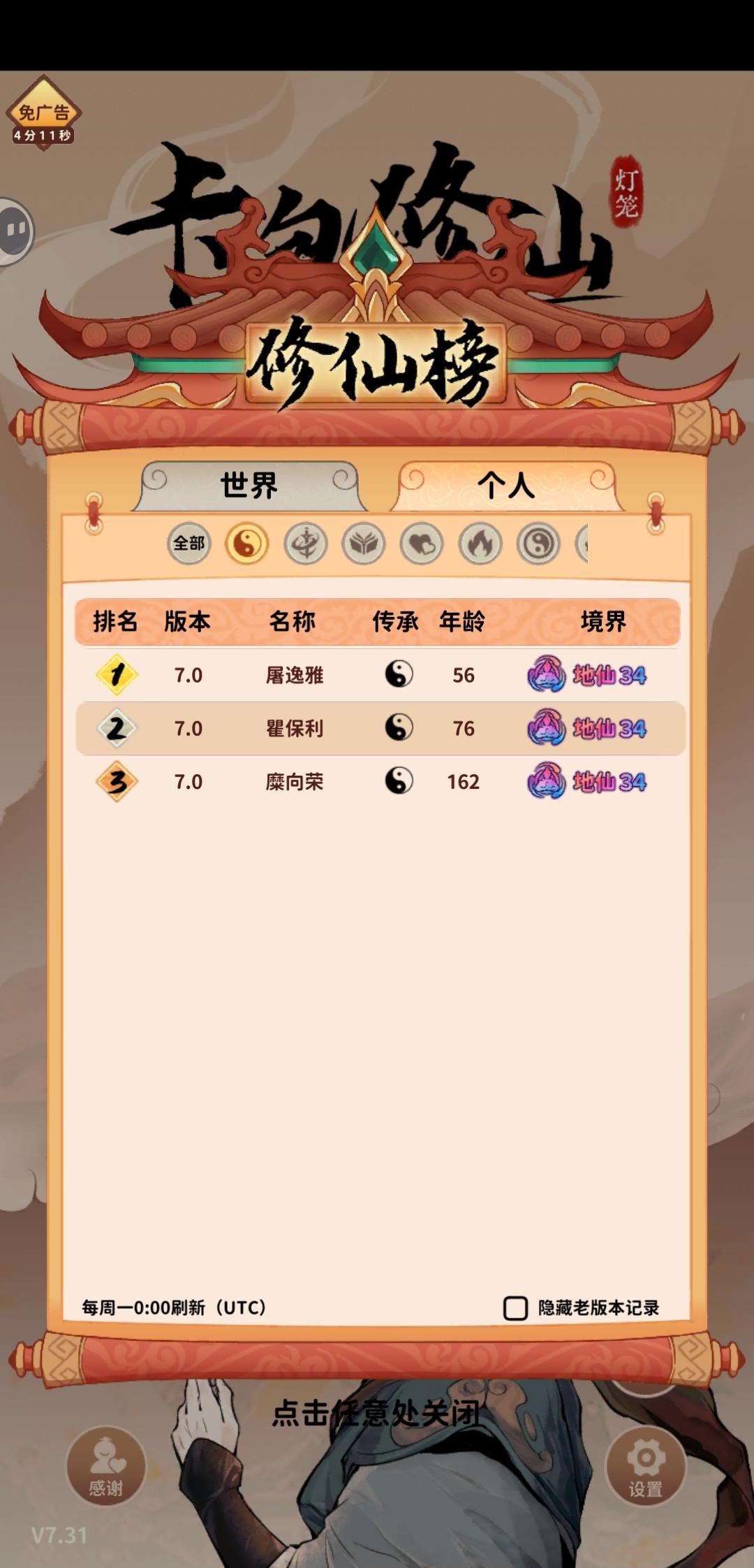 把传承的功法点上随机出锻体术,点点概率和寿命,我用秒表记录时间是五分钟左右到达化神,运气差点只有初期运气好点有圆满,十多分钟地仙