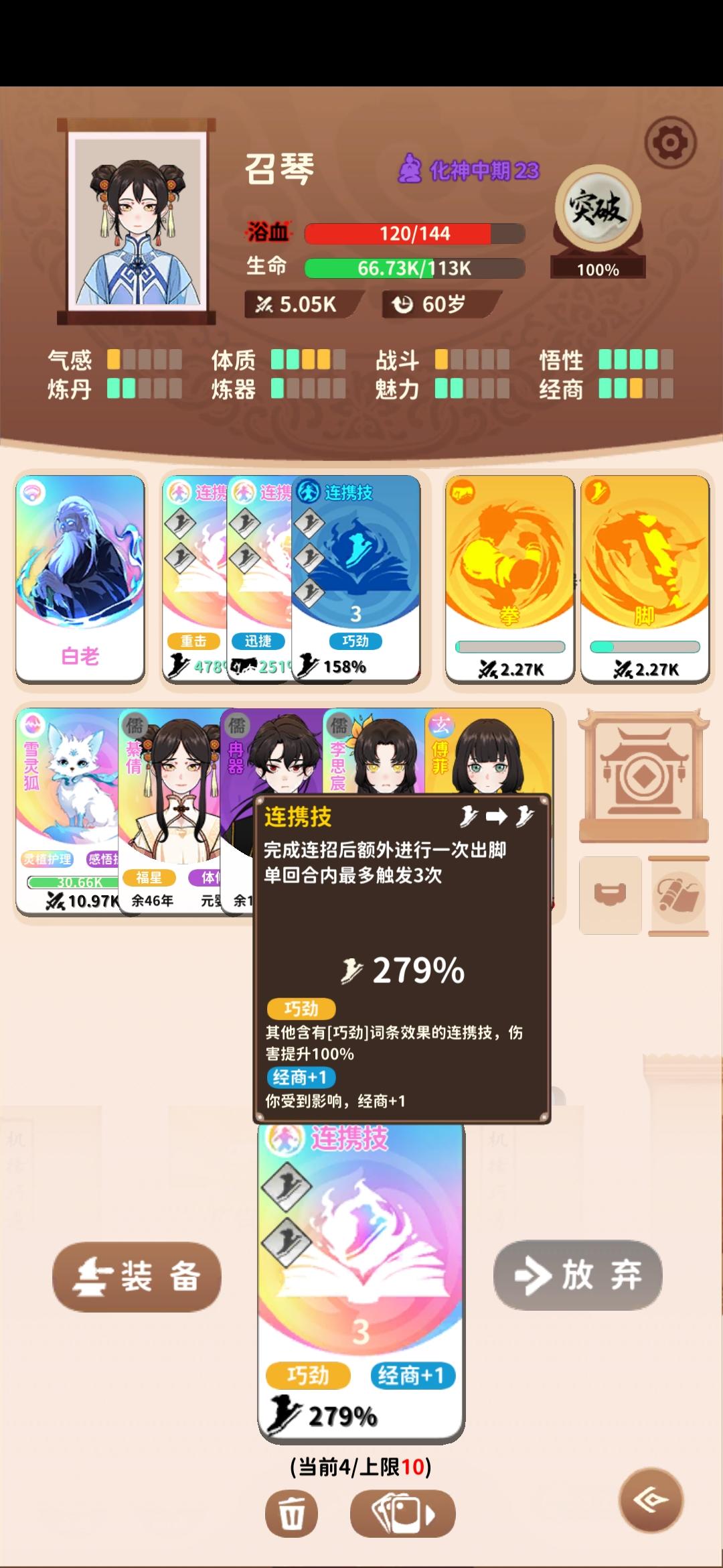 在群在群里聊天的时候突发奇想开局随机到 枯木逢春+恢复术 就能躺着修仙用永恒的时间(不死长生决)来挑战推测可能要不止千年,得万年才行。1后期debuff叠上去吸收的灵气少2功法又只有一部3不能开卡包开商店,导致没有突破丹,突破概率小图上的截图是之前玩的,下次刷开局刷到就准备去试试这怕不是有点小难后期1.2