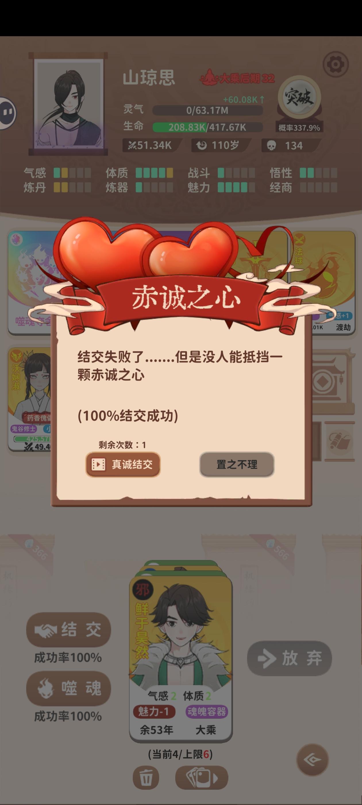 这人结交成功率还是110%,我夺舍之后直接通关了