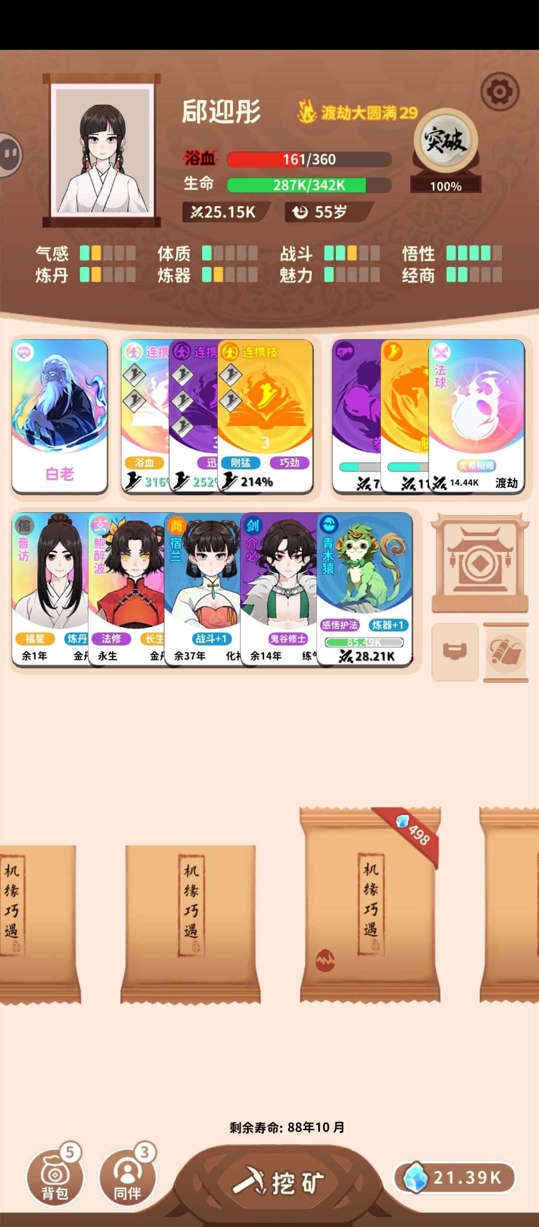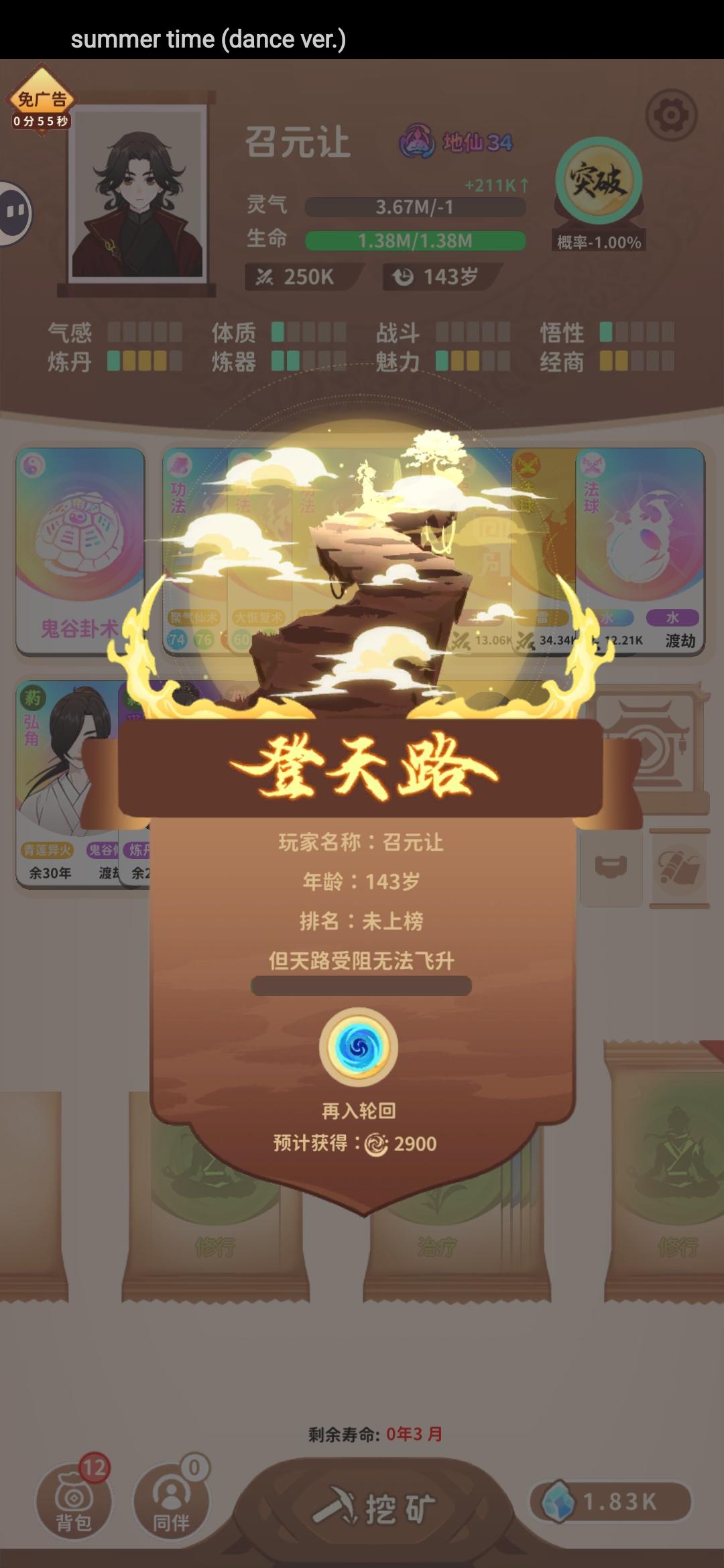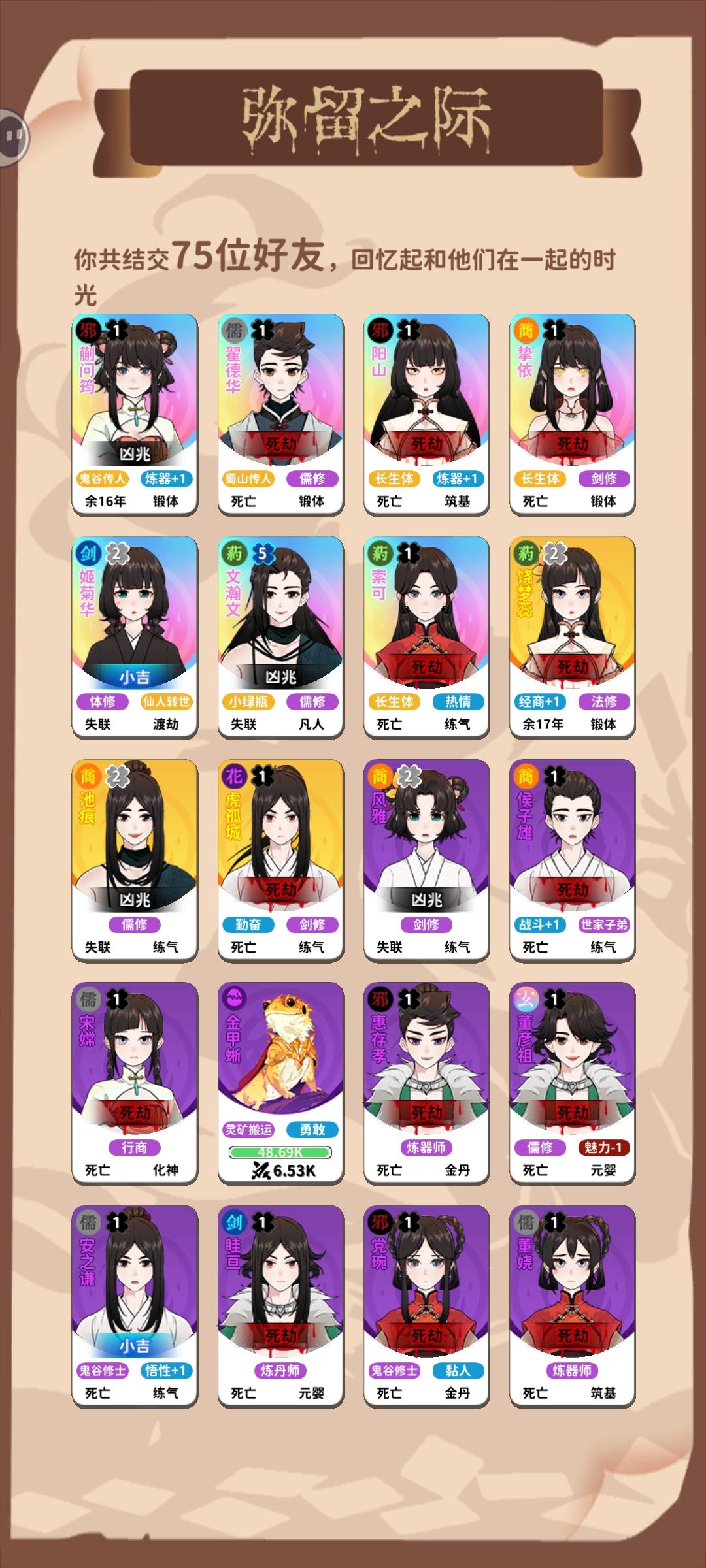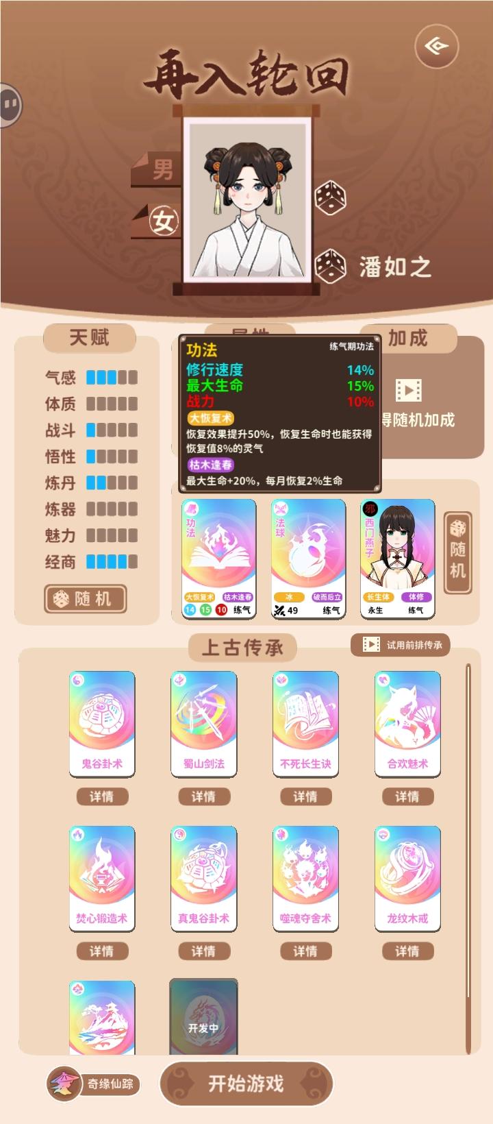 开局刷装备。刷到一个大恢复和枯木逢春一起的。开心坏了。准备看个广告刷一下属性。结果广告里面进去了。点退出来,又刷新了。气得我按了好久。终于,又出了!但是过去好久都没有刷出大回复和恶魔书印。气得我把。功法都丢了。结果下个商店就出了一个390的恶魔封印。偏题了,就是。遇见一个大乘圆满。有寿星词条。八十年寿命。感觉他可以成仙。结果死了。只见过长生体的成仙。你们有没有见过成仙过的,不是长生体#游戏日常