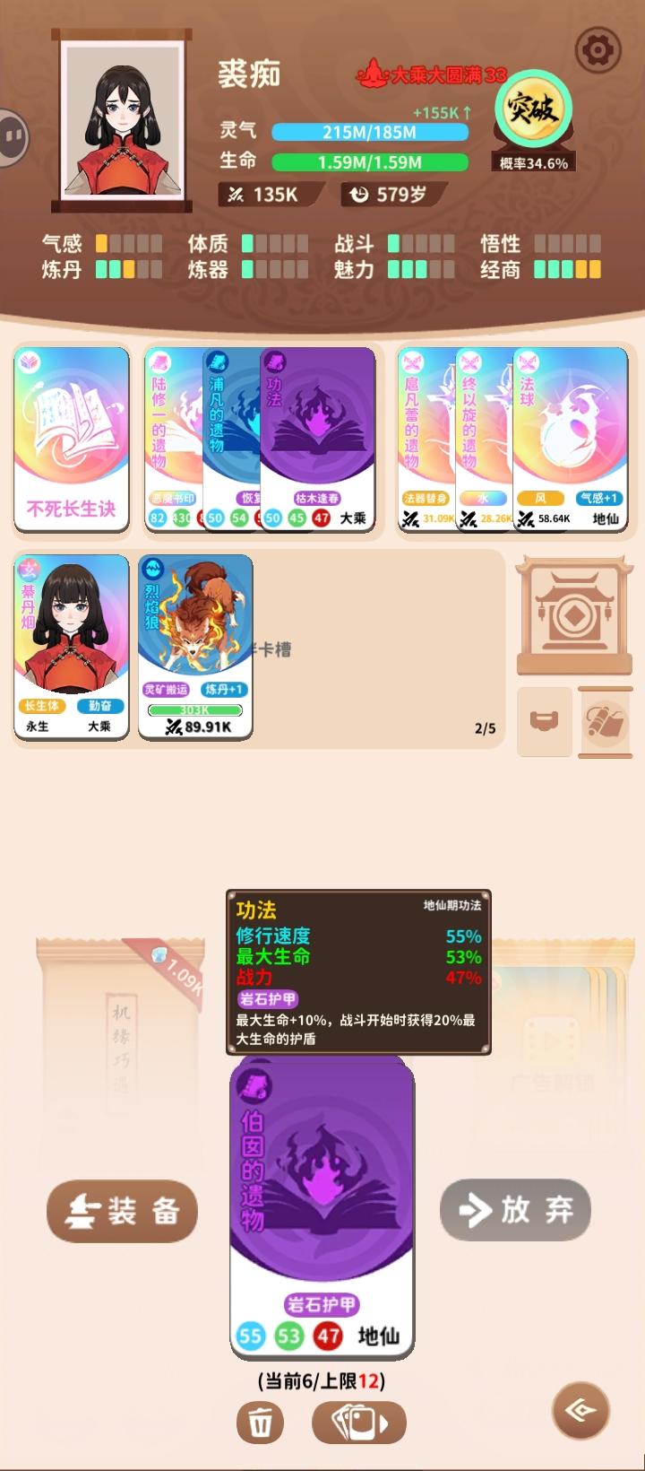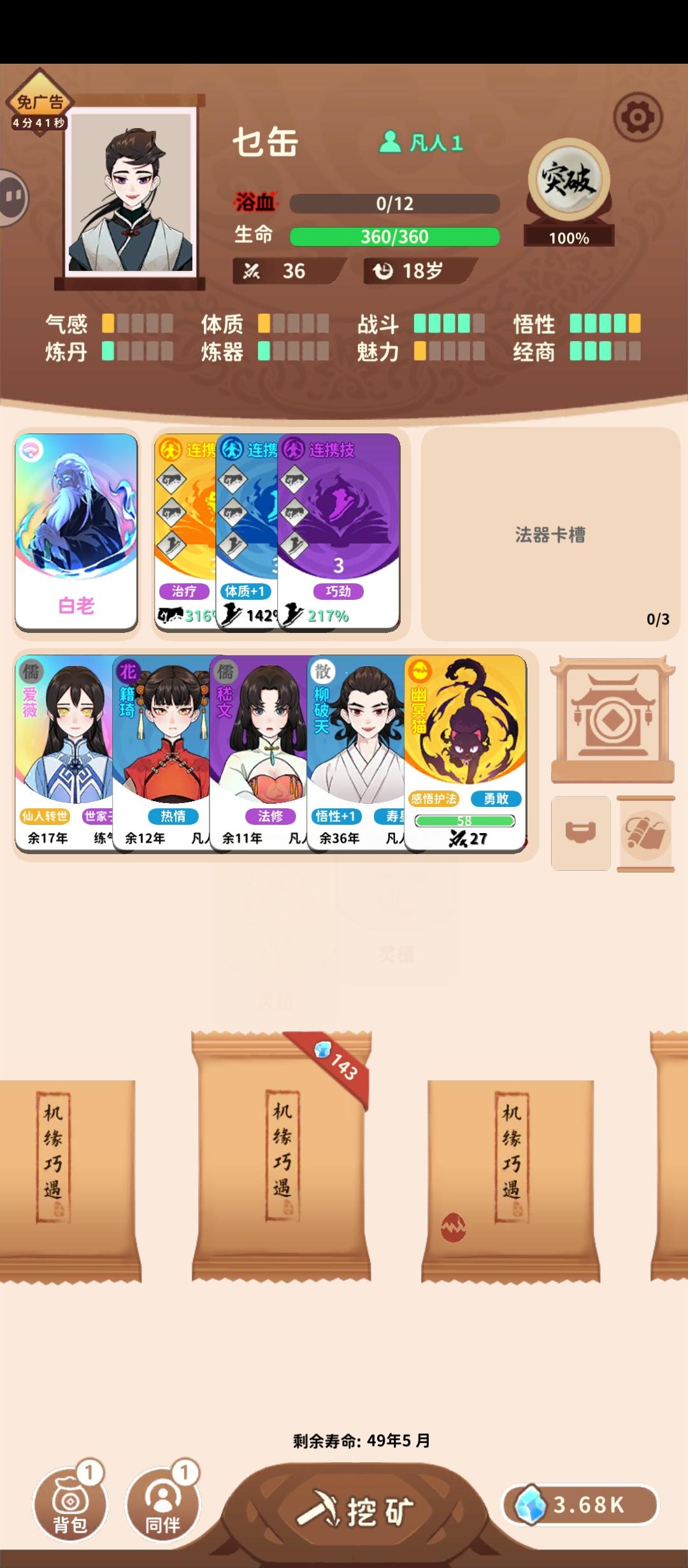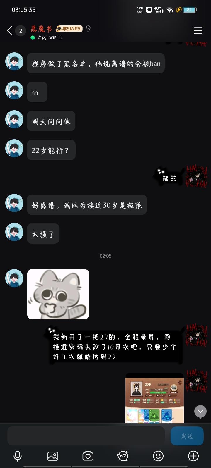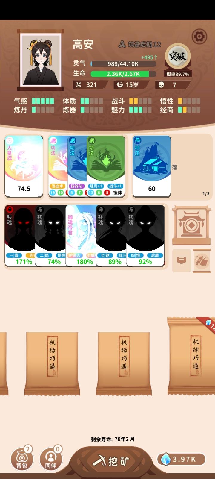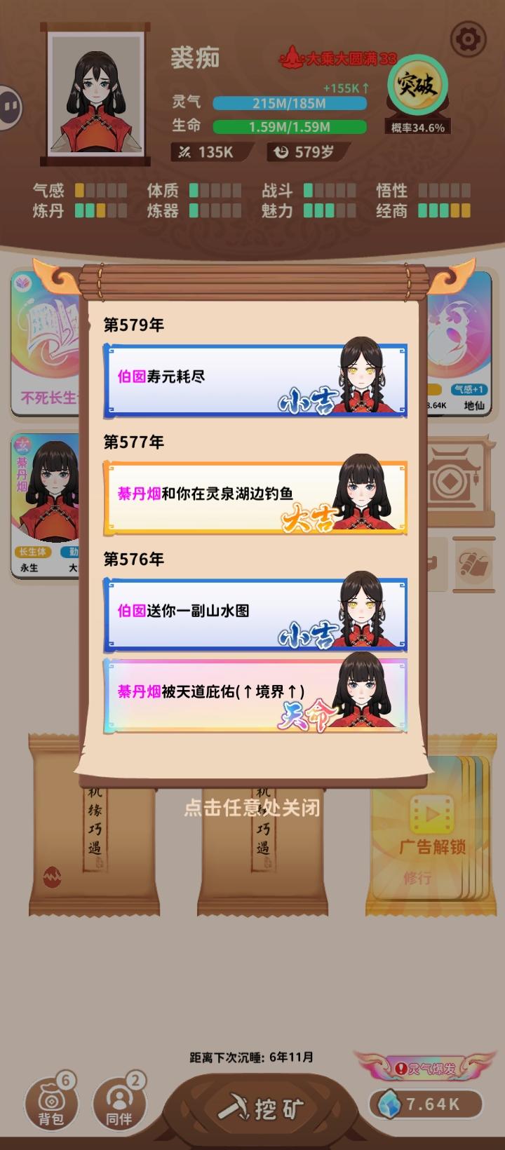 开局刷装备。刷到一个大恢复和枯木逢春一起的。开心坏了。准备看个广告刷一下属性。结果广告里面进去了。点退出来,又刷新了。气得我按了好久。终于,又出了!但是过去好久都没有刷出大回复和恶魔书印。气得我把。功法都丢了。结果下个商店就出了一个390的恶魔封印。偏题了,就是。遇见一个大乘圆满。有寿星词条。八十年寿命。感觉他可以成仙。结果死了。只见过长生体的成仙。你们有没有见过成仙过的,不是长生体#游戏日常