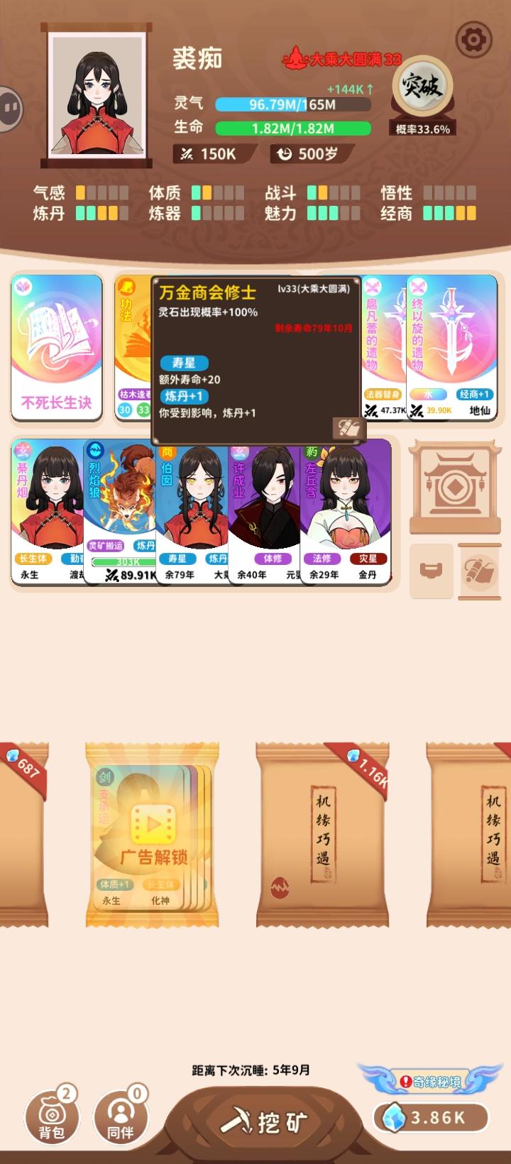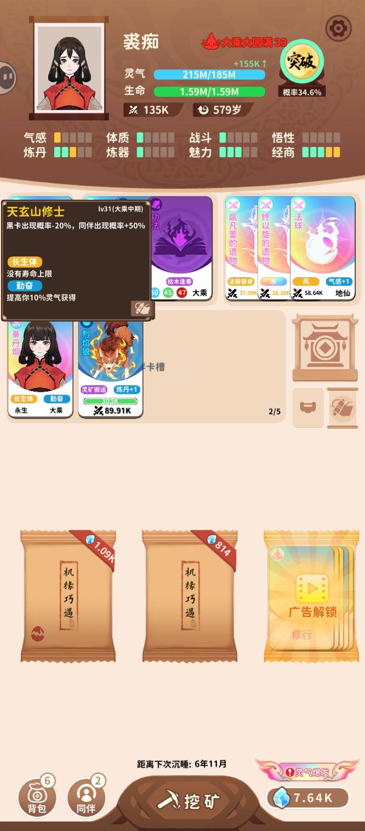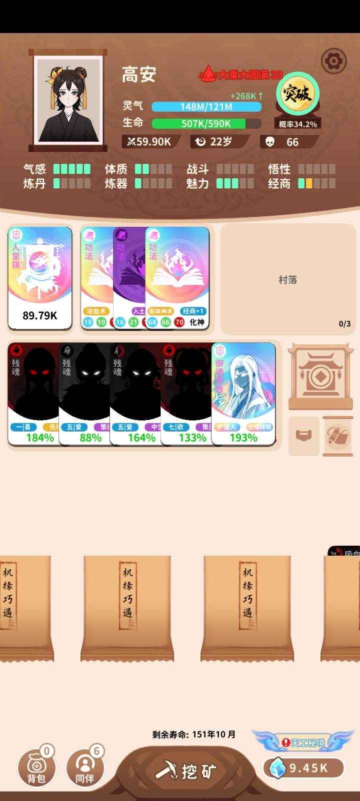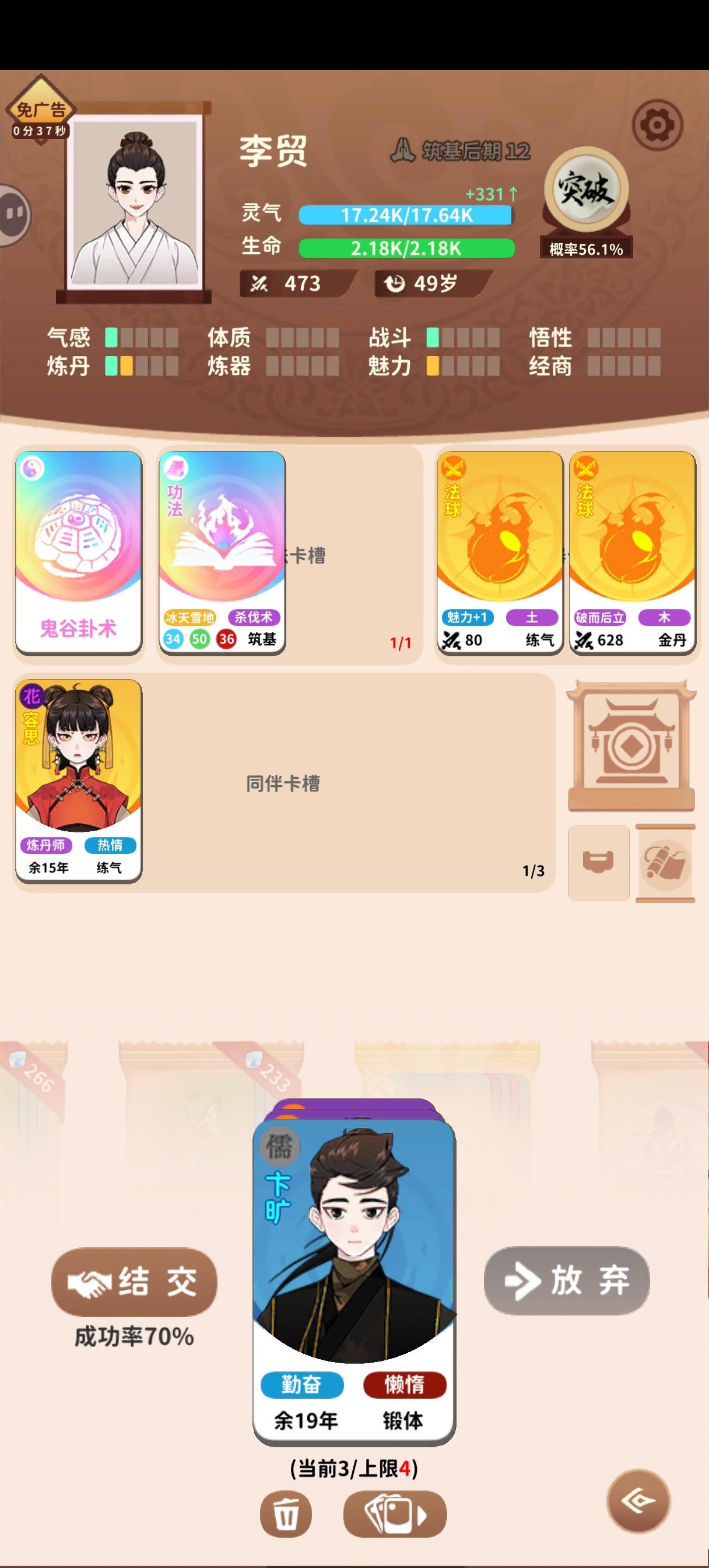 开局刷装备。刷到一个大恢复和枯木逢春一起的。开心坏了。准备看个广告刷一下属性。结果广告里面进去了。点退出来,又刷新了。气得我按了好久。终于,又出了!但是过去好久都没有刷出大回复和恶魔书印。气得我把。功法都丢了。结果下个商店就出了一个390的恶魔封印。偏题了,就是。遇见一个大乘圆满。有寿星词条。八十年寿命。感觉他可以成仙。结果死了。只见过长生体的成仙。你们有没有见过成仙过的,不是长生体#游戏日常