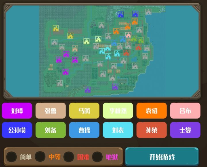 第一次玩这个游戏 中等模式玩了好几次 老是打不过 卧龙出山刘备开局只有一个城池好难啊 刚攻下就被打下来#策略城池ii