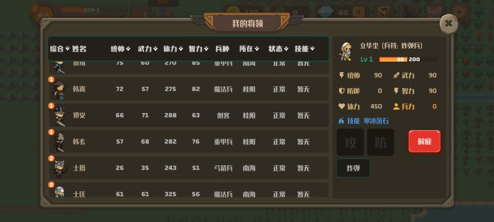 士兵一共六种类型:重甲兵 剑士 刺客 炸弹兵 魔法兵 弓箭兵重甲:攻击:30+武将专属加成+阵型加成生命:300+武将专属加成+阵型加成攻击速度:慢移动速度:慢射程:0.5自带立盾技能剑士攻击:30+武将专属加成+阵型加成生命:200+武将专属加成+阵型加成攻击速度:中移动速度:中射程:0.5刺客攻击:45+武将专属加成+阵型加成生命:120+武将专属加成+阵型加成