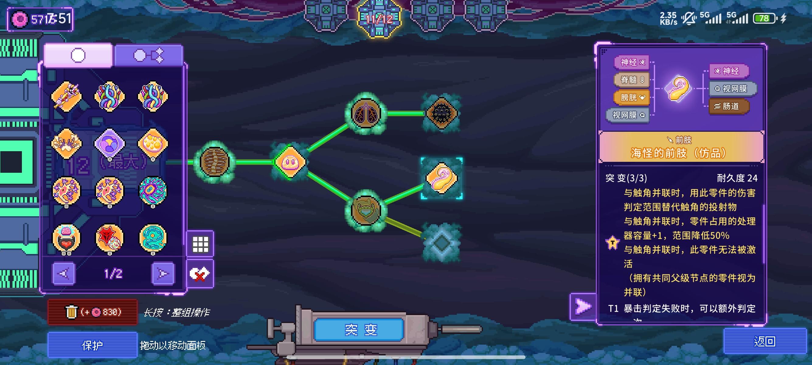突变那里写的是 与触角并联时无法被激活,但是我没有与触角并联啊,禅龟的膀胱是有正常触发的,但海怪的前肢就是没反应