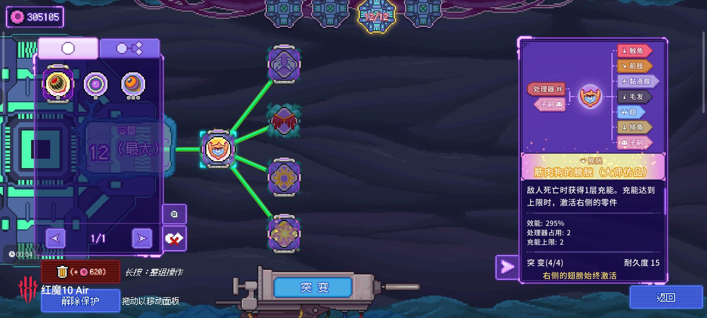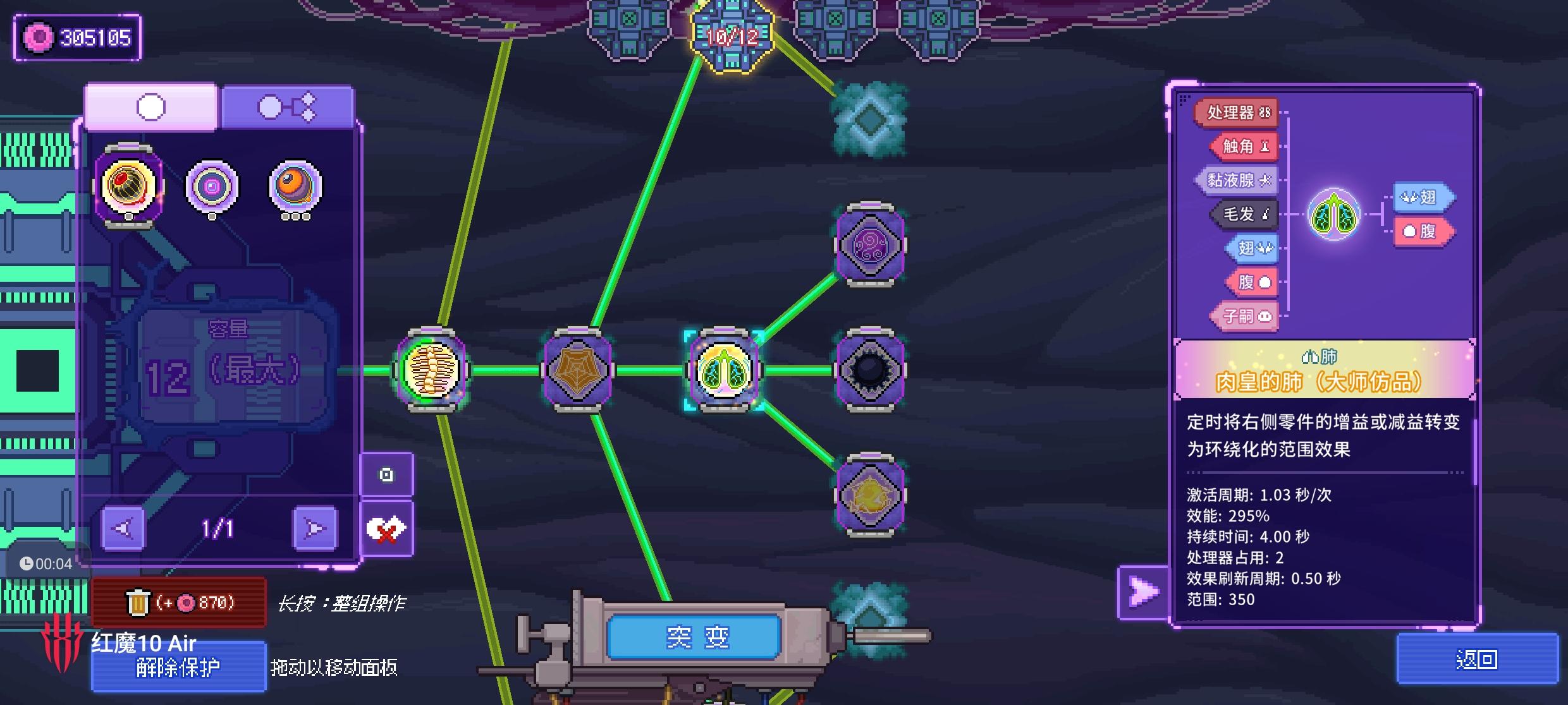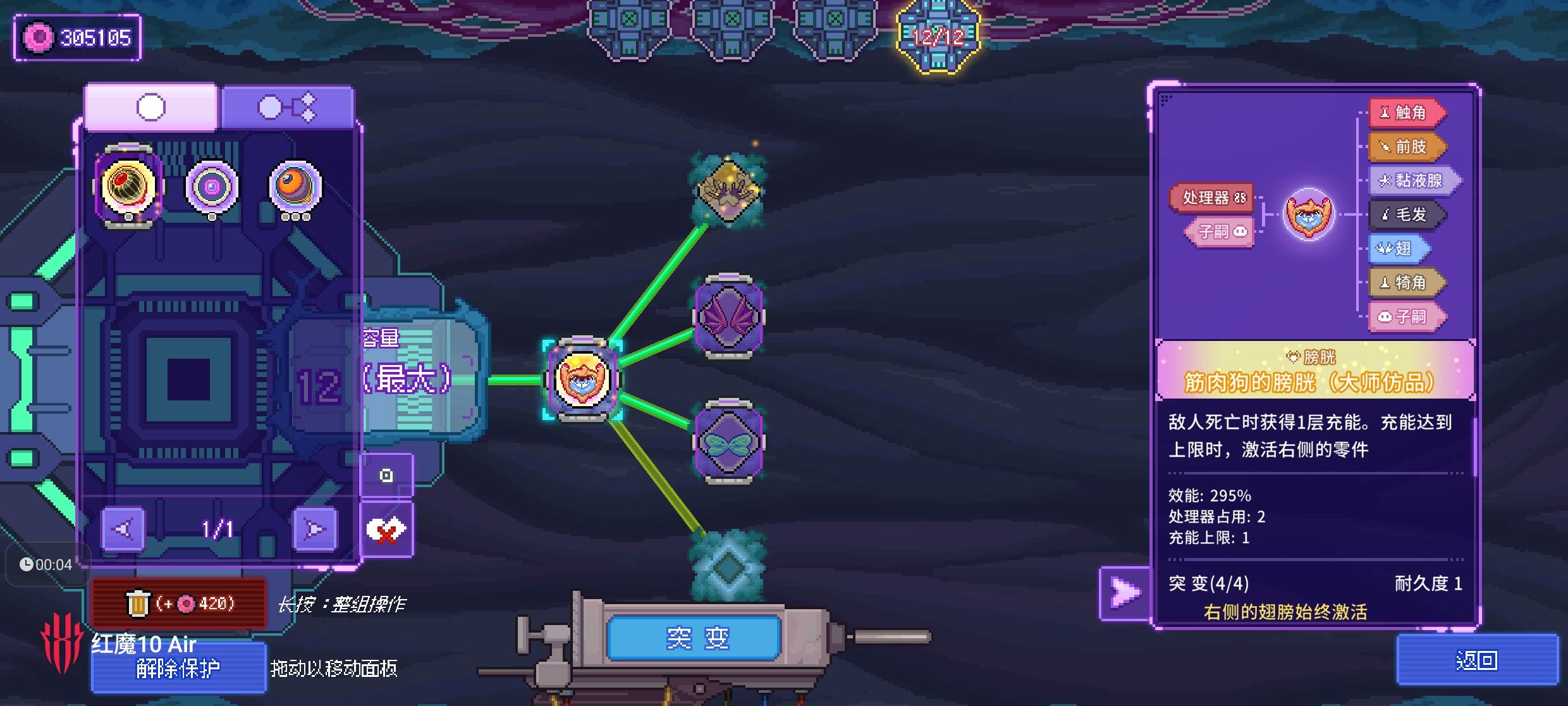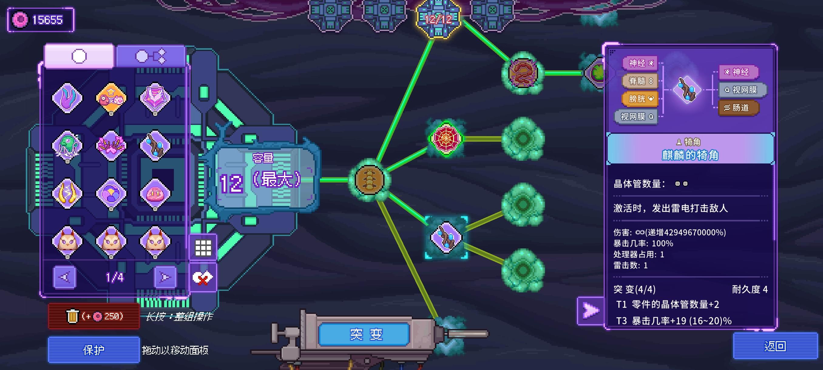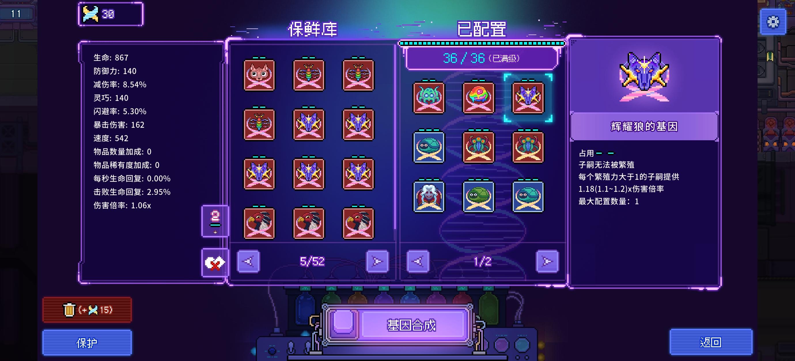 基因编辑界面,已配置的基因栏每次翻页排序都会改变,这不方便编辑。另外可能因为我色弱的问题,防御型和功能型的基因颜色太近很难分辨,建议在右侧大图里标明基因型号