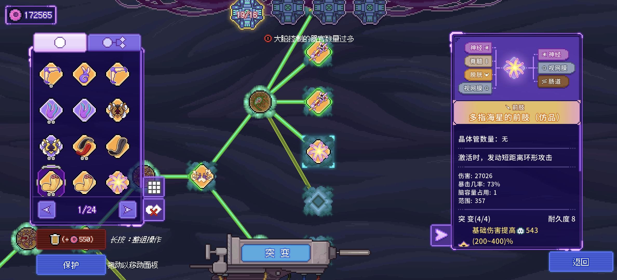 为什么后边不能进行植入?我这边显示大脑容量还有,之前不小心把没保护的器官全删了就成这样了