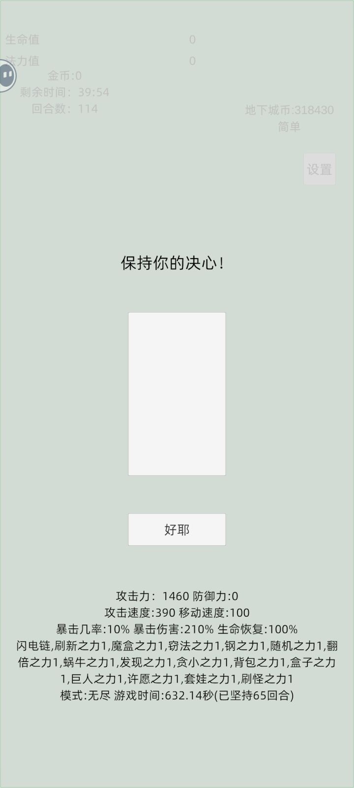 基础属性超过嫉妒属性会交换,所以攻击力最高只能1000,不能疯狂加攻击力过关。(嫉妒在我看来是新手最难打的)打伤害思路:钢之力+巨人之力+暴击伤害(暴击伤害我选的是迷你之力的魔盒加伤害上限,也可以用猫猫大礼包赌)防御碰一下就死:锁血之力(无敌加容错)+窃法之力(暴击回蓝,技能有无敌效果,但现在有bug只能看运气了)剩下的带加金币和增加容错的技能,我的不一定是最好的,但可以用这个思路改技能。