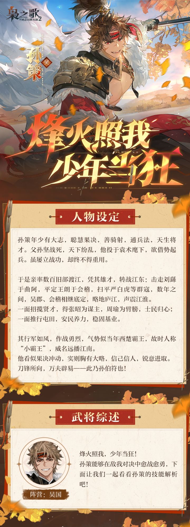 新武将情报 | 烽火照我 少年当狂!孙策档案公开~