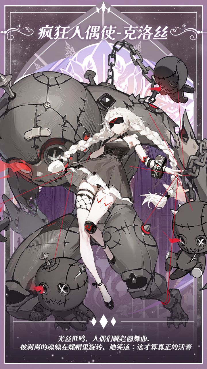 「光丝低鸣,人偶们跳起圆舞曲,被剥离的魂魄在螺帽里旋转,她笑道:这才算真正的活着」“血肉终将腐朽,齿轮方为永恒”克洛丝曾是伊芙洛特魔法学院的天才学者,因私自将活体神经与熔炉能量结合,引发实验事故而被学院驱逐。