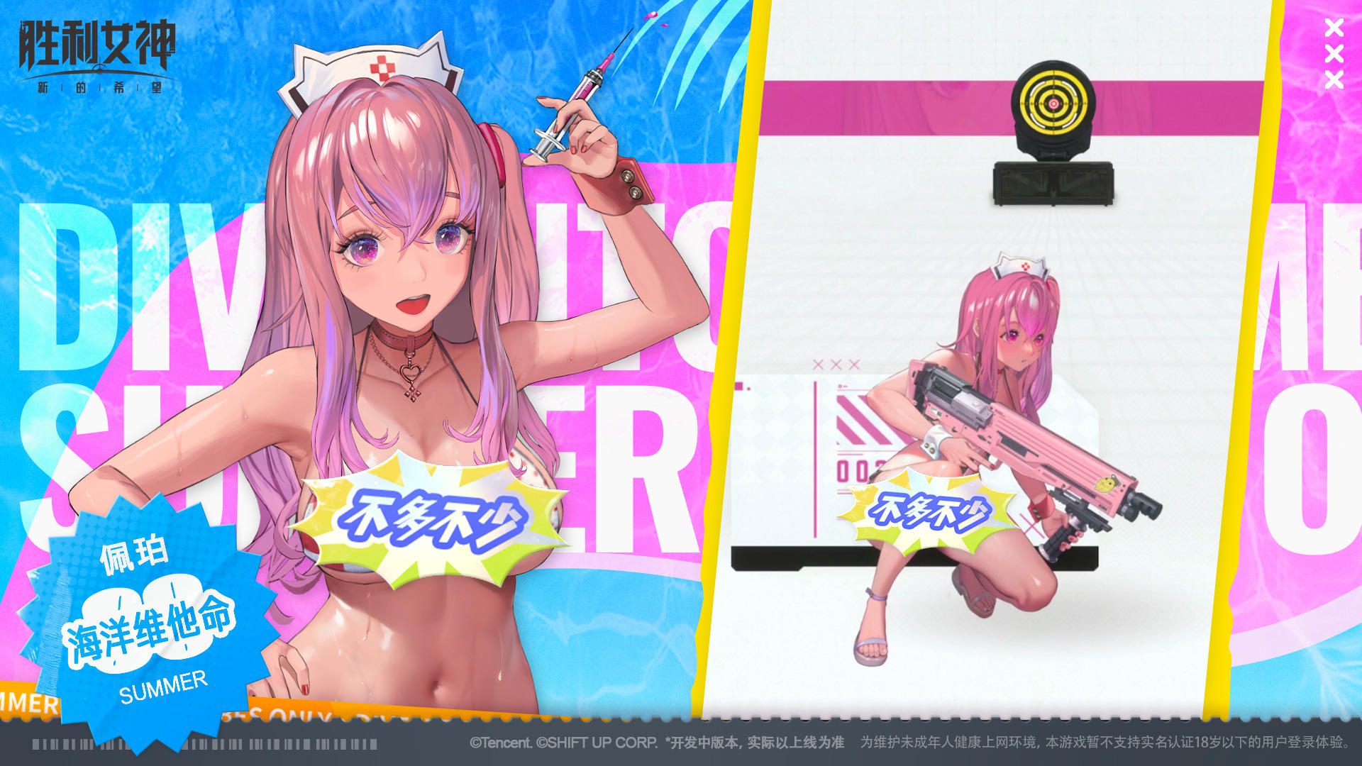 凉爽的夏日!佩珀以一身尤为赏心悦目的比基尼着装出现在海边。佩珀全新时装-「海洋维他命」可通过活动Pass获得。*更多获取详情可查看版本更新公告。#胜利女神新的希望