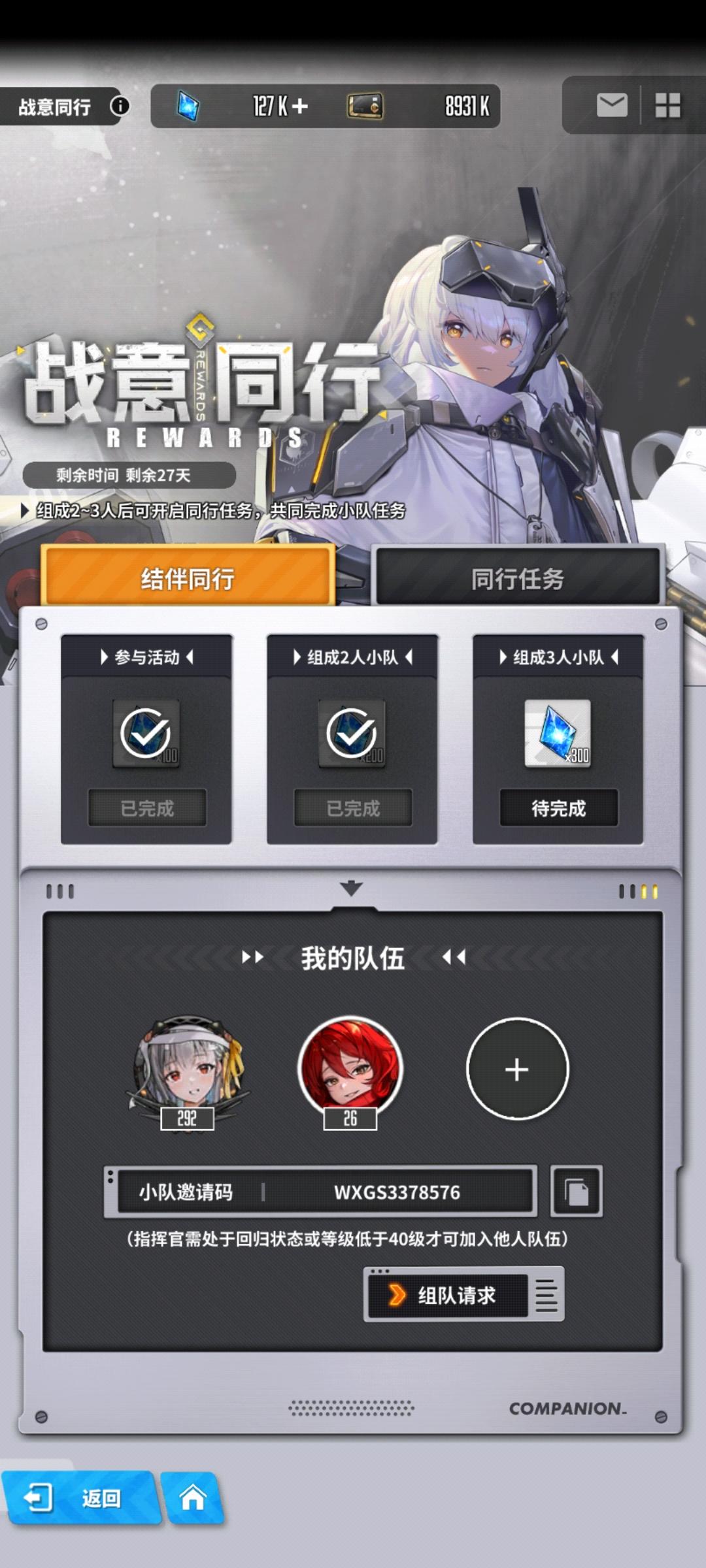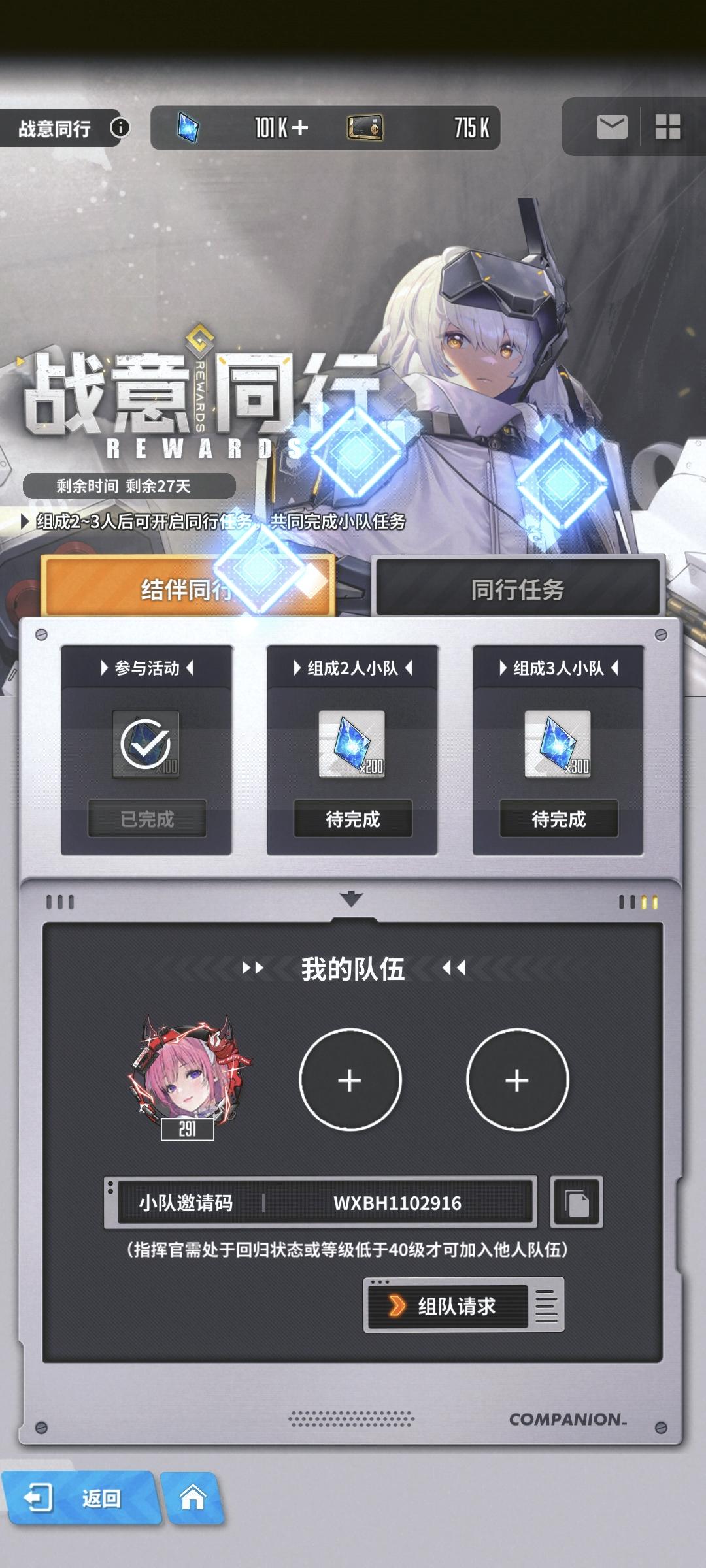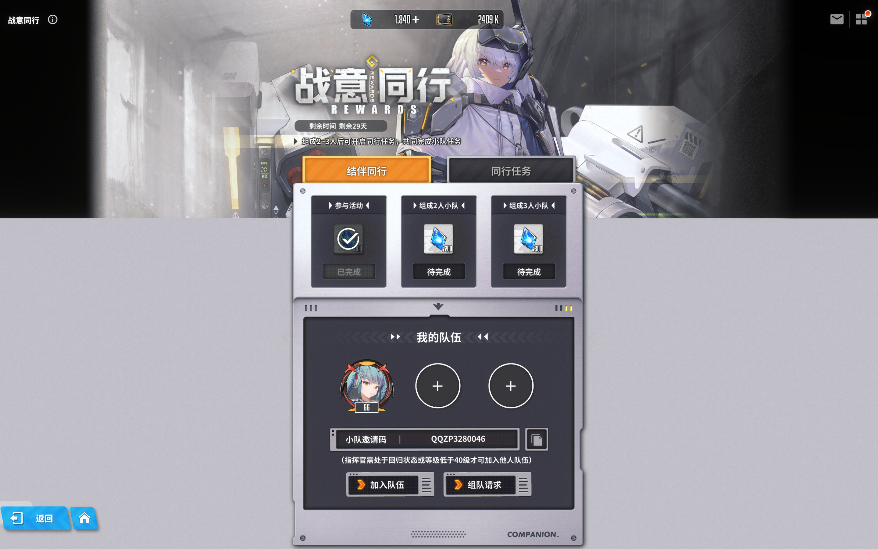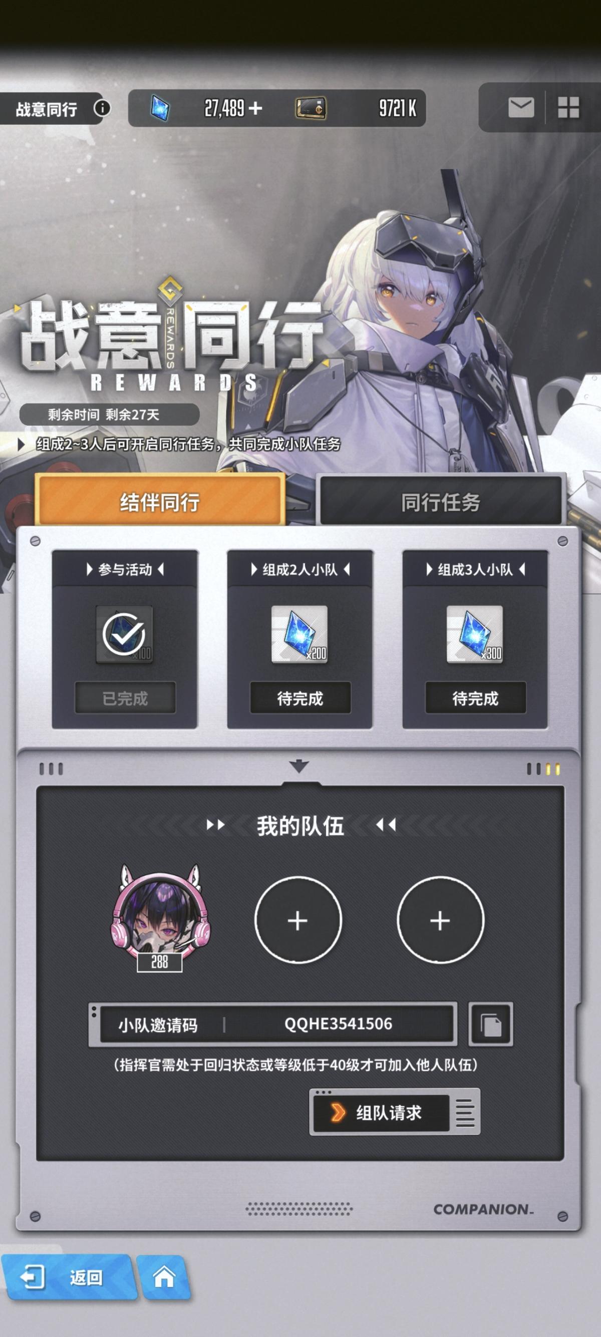 刚玩。有没有人组队。满勤