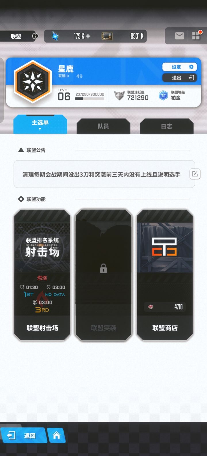 盟突成绩稳定百分之一左右、最近几次都是砖石的v区联盟招人啦,id722,不排刀,无压力;战力、练度不要过低并保证打满三刀、不要长期不活跃的就能加入了;想加入的可以在评论区评论并可以说下练度,联盟公告有联盟企鹅裙(不强制加群),内有国际老登、协同车车、菜鸟代打、聊天吹水,氛围良好;目前只剩一坑。