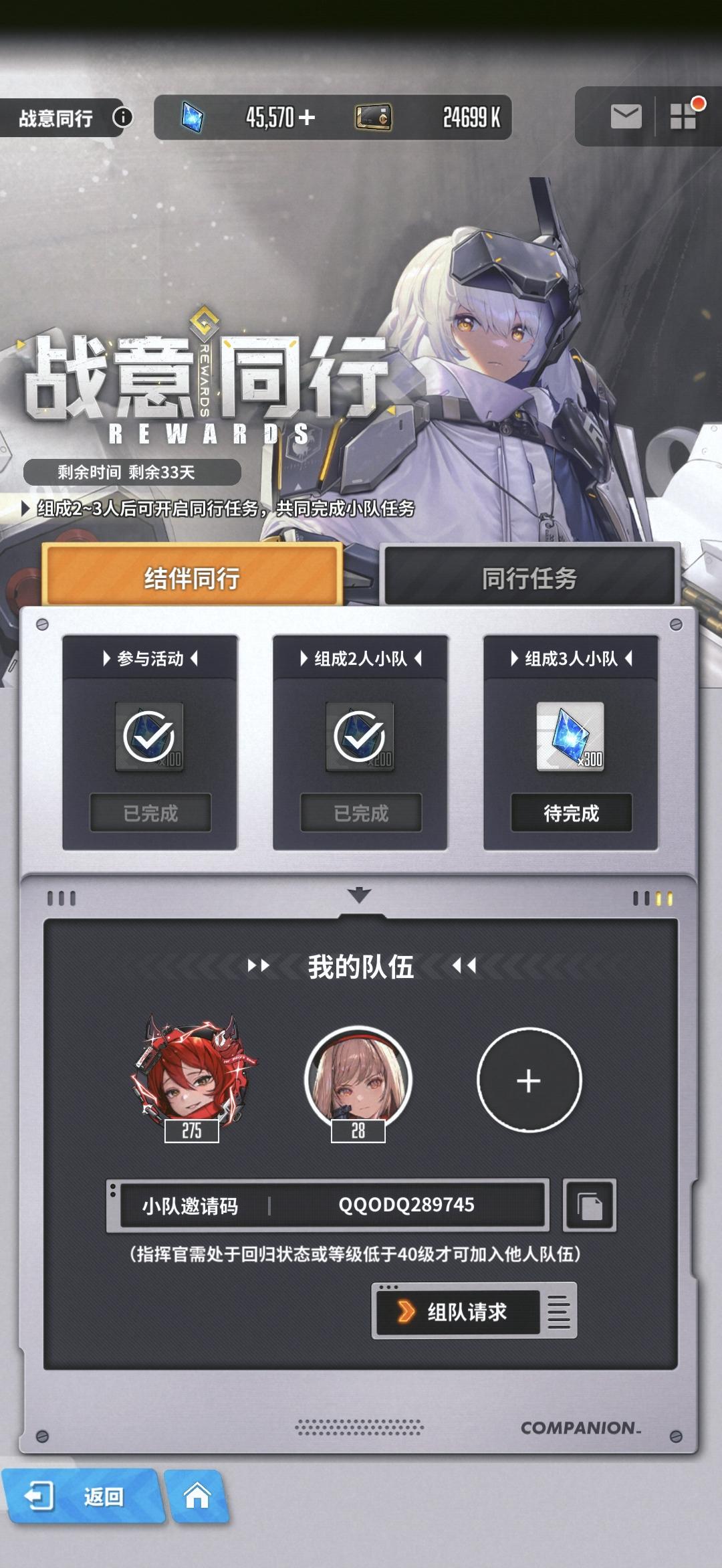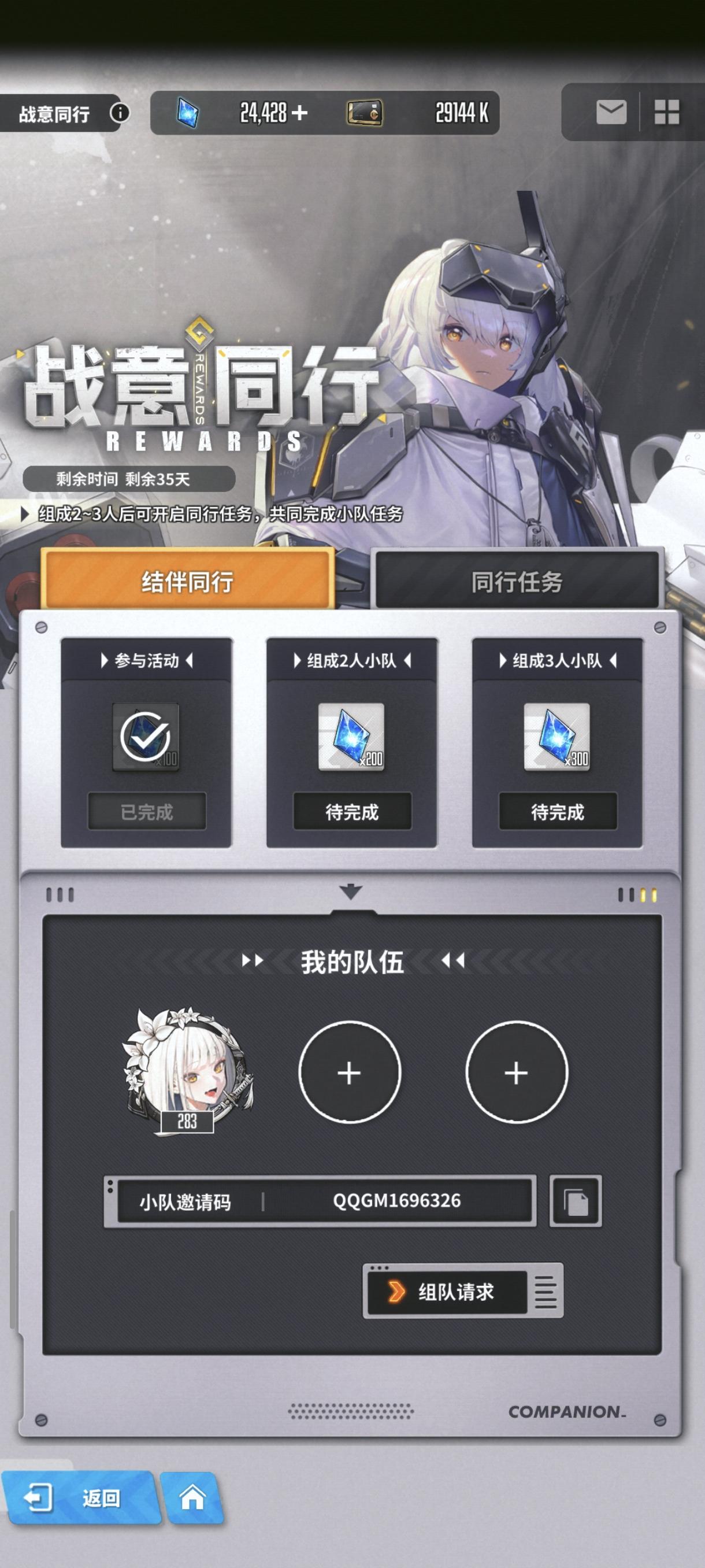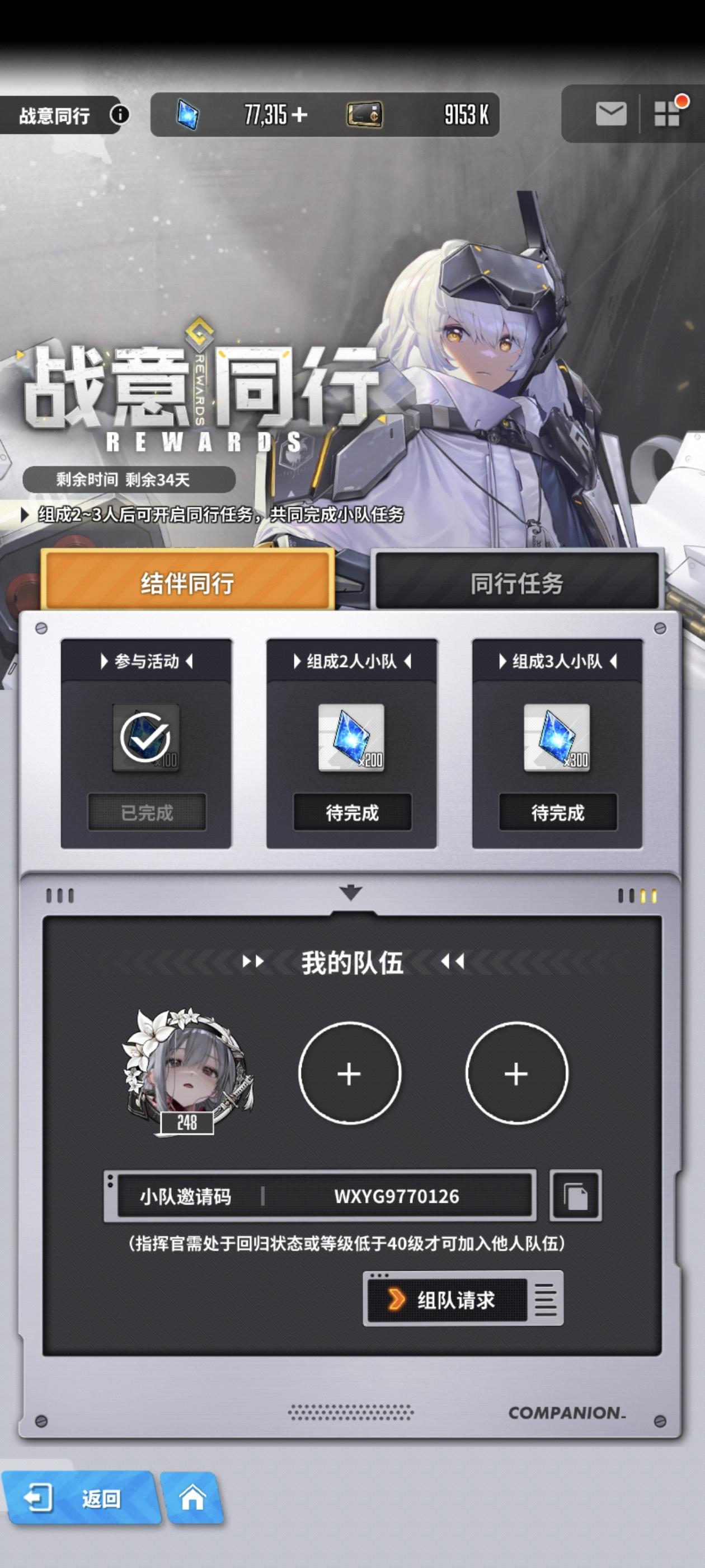 差一个回归玩家或者新玩家,一起做任务,全勤老登#游戏日常 #胜利女神新的希望