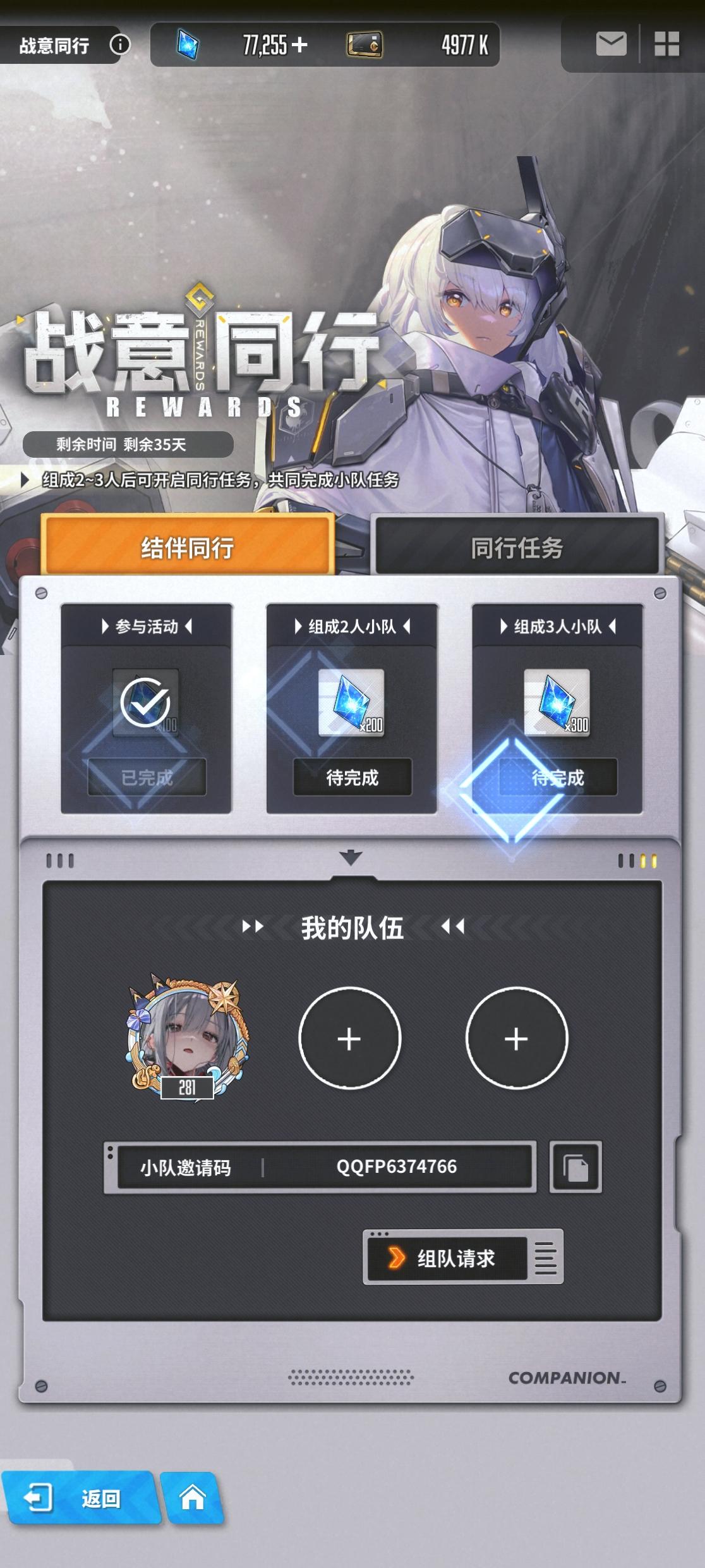 战意同行全勤求组队QAQ