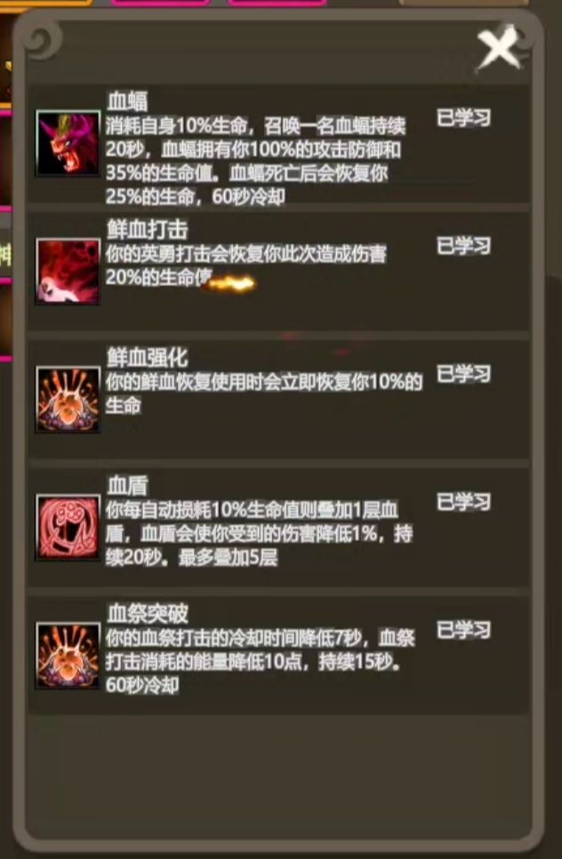 鲜血之王1-4转技能