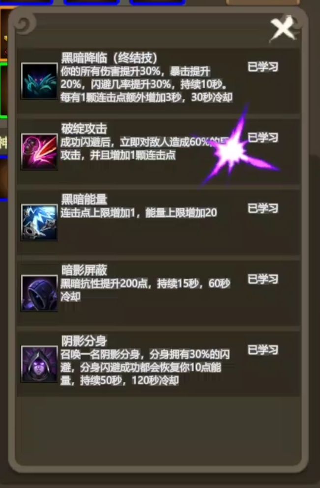黑暗大师1-4转技能