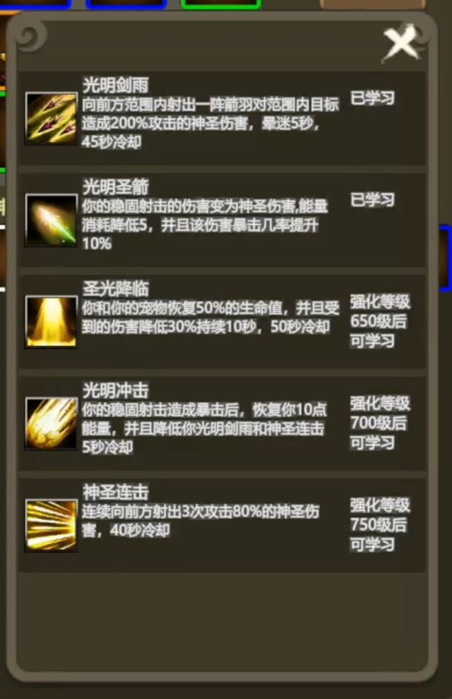 光明使者1-4转技能