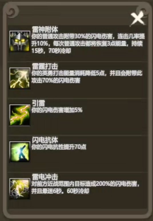 雷神1-4转技能