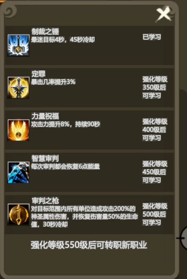 圣教军1-4转技能