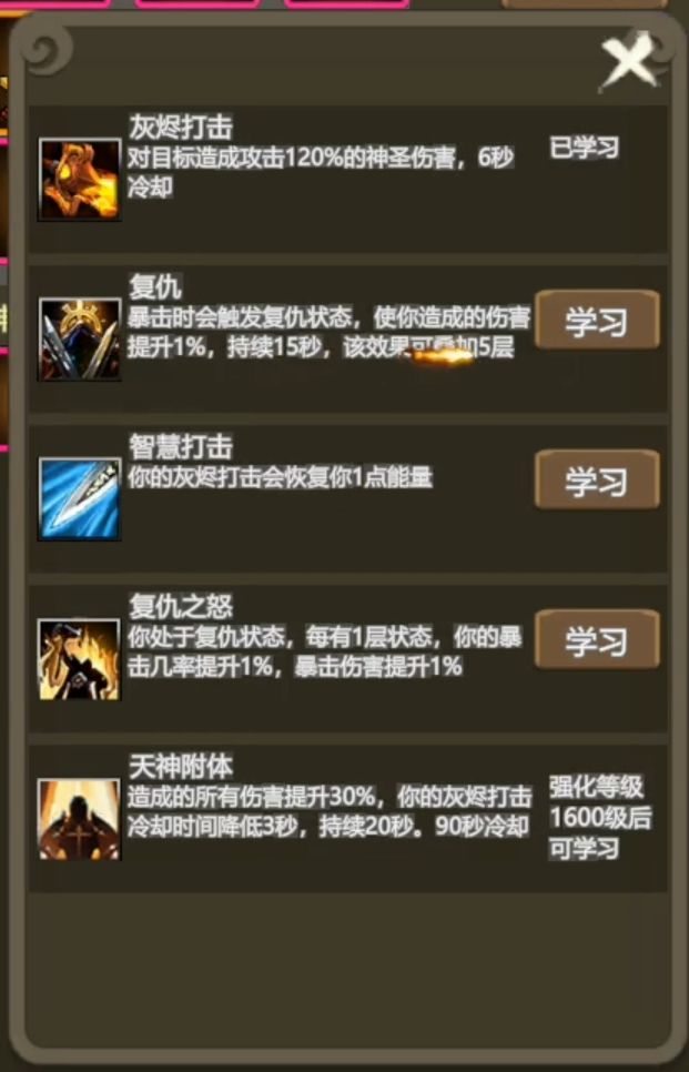 灰烬使者1-4转技能