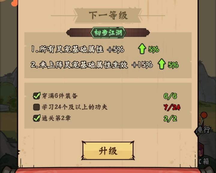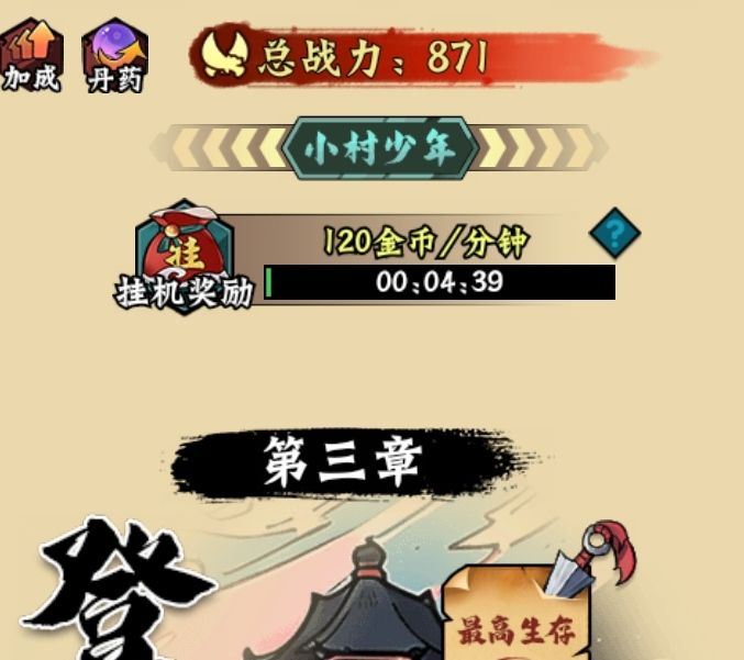 还以为没有主线任务呢,玩到第三关想着除了闯关还要干什么,然后才发现升级登记那些任务居然藏在最上面,做完提升了就打过了后面几关了主页中间才显示主线任务,感觉可以早点开