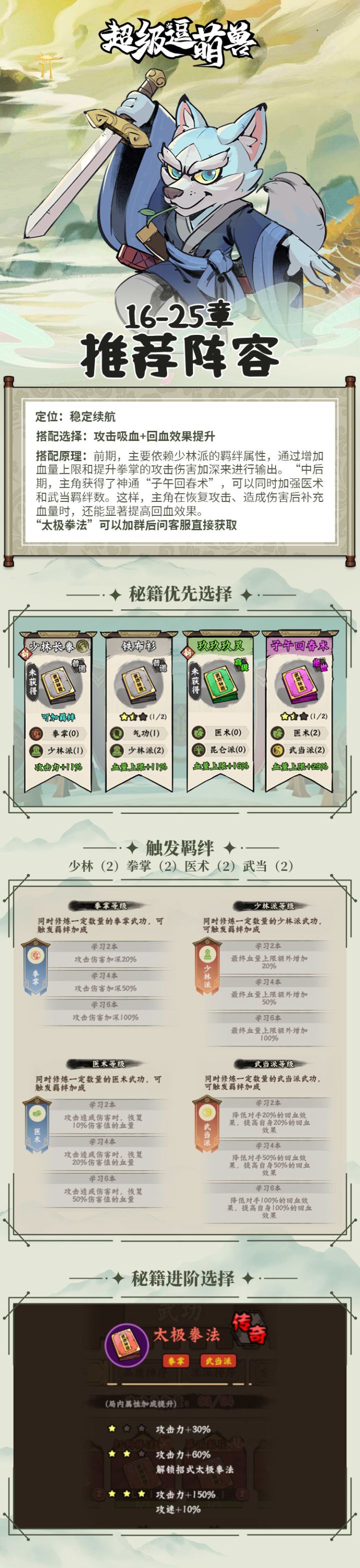 逗萌兽攻略 | 16-25章武功秘籍推荐阵容