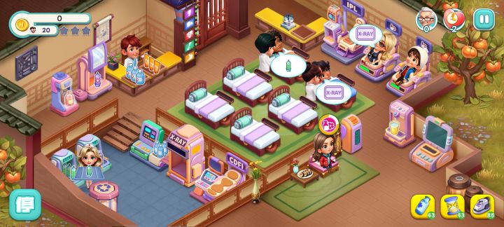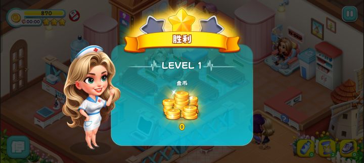 刚打完一关,就给我卡这样,点设置那边以后再回来就变成三十秒,有顾客进来但是护士只会在那跳,指令也完全没用😓