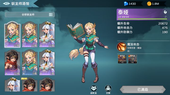 泰娅是游戏的女主角。她和姐姐艾拉莉在一场魔法风暴后,被困在一座孤岛上,四周被辽阔的海洋包围,泰娅与姐姐共同面对恶龙的威胁,逐步揭开背后隐藏的古老邪恶力量。驯龙师泰娅作为技艺高超的驯龙师,其卡牌会在世界地图中的遗落息谷-幽暗领域副本掉落,驯龙师酒馆的功能也会在主线任务中解锁。让我们一起来看一下泰娅的技能吧!泰娅对场上的耀金龙有魔法攻击加成。泰娅的魔法攻击技能具有较强的群体伤害效果,适合出场阵