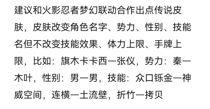 关于梦幻联动建议!#浅评一下 #名将杀 #皮肤