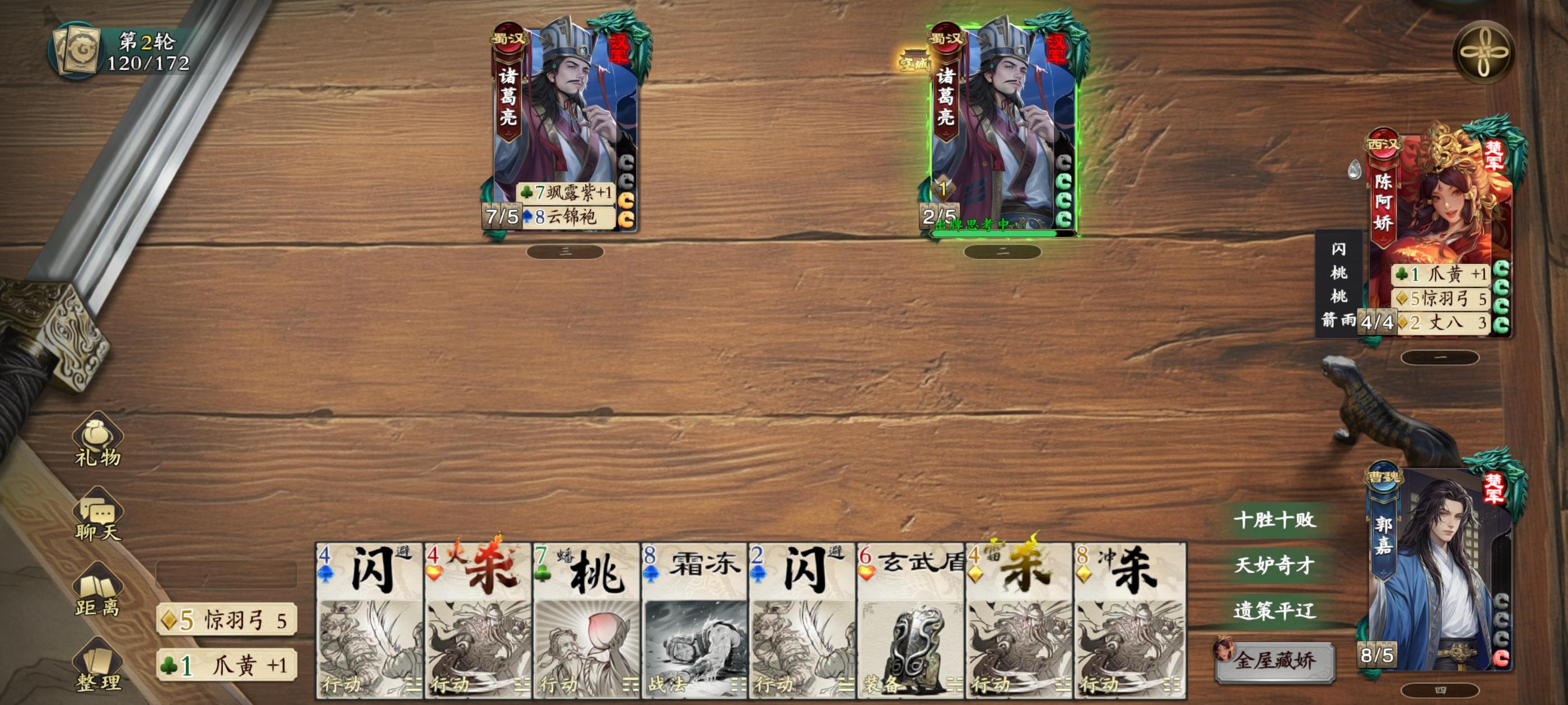 这把对面两诸葛亮更离谱,叠了三个舌战,摸了50牌,不是他不能摸了,是我们这边扛不住了