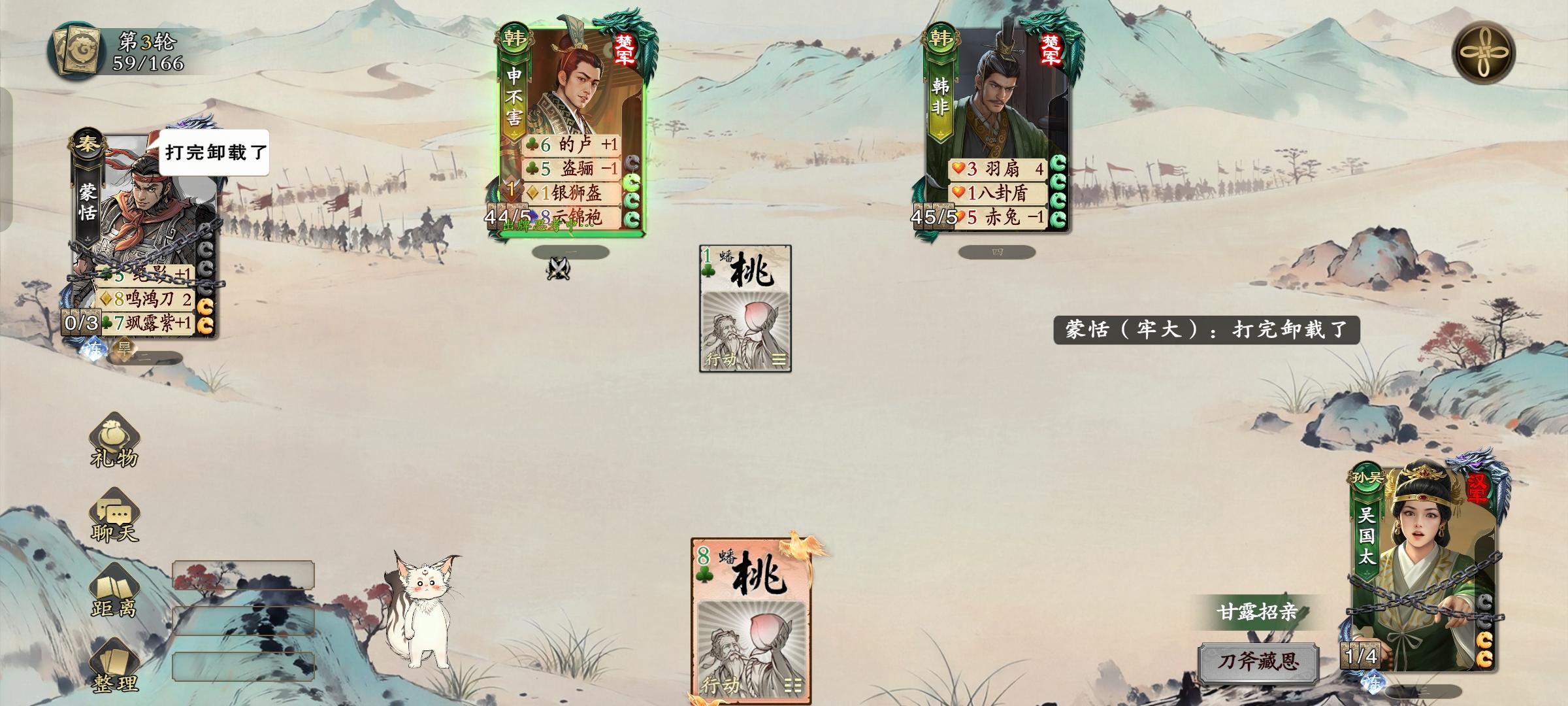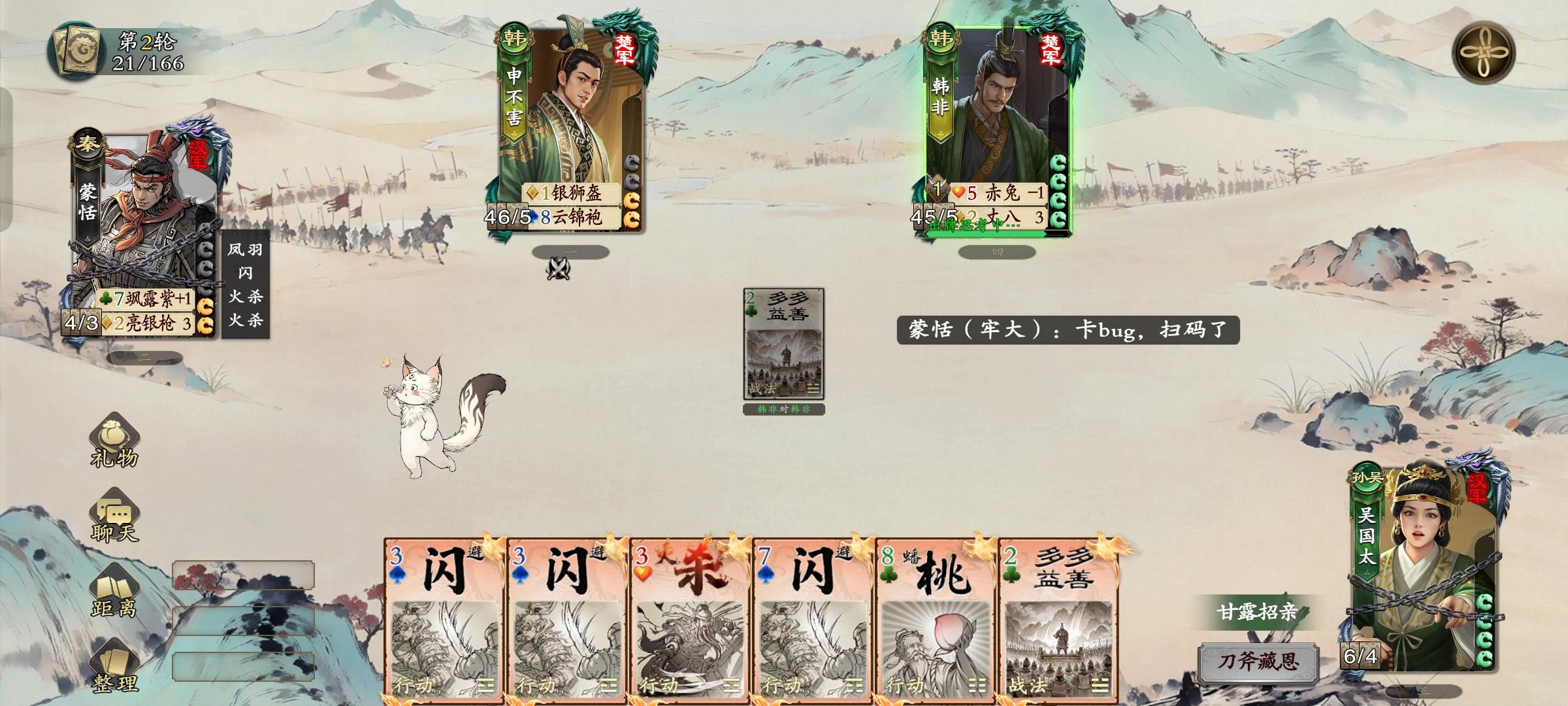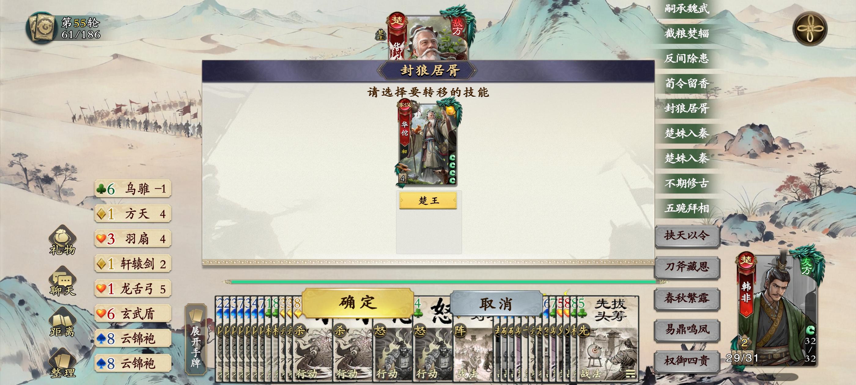 不知道是不是展示手牌也算技能了,刷了40张牌,韩非弃牌后还是40多张