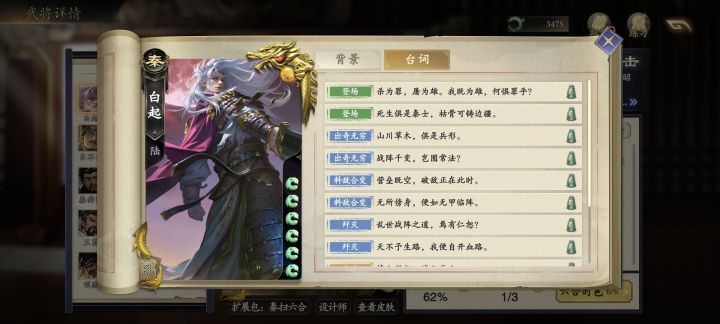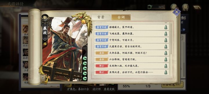 建议在聊天里面,添加每个名将的经典台词的快捷发送。 每个名将点开都能看到好多台词和配音,但是在游戏中似乎不能主动从聊天中触发(?)如果可以主动聊天触发感觉可以对每个名将都有深刻印象,也避免了只剩下尬聊或者不文明或者干脆一句下来都不说话这种。 类似隔壁某卡一样,像出圈的界巨兽大人“得胜已是定局,何必急功近利”,还有耳朵聋吗啥的。曹丕的“世子之争向来如此…”,可以选择性把武将里面的经典台词配音都添