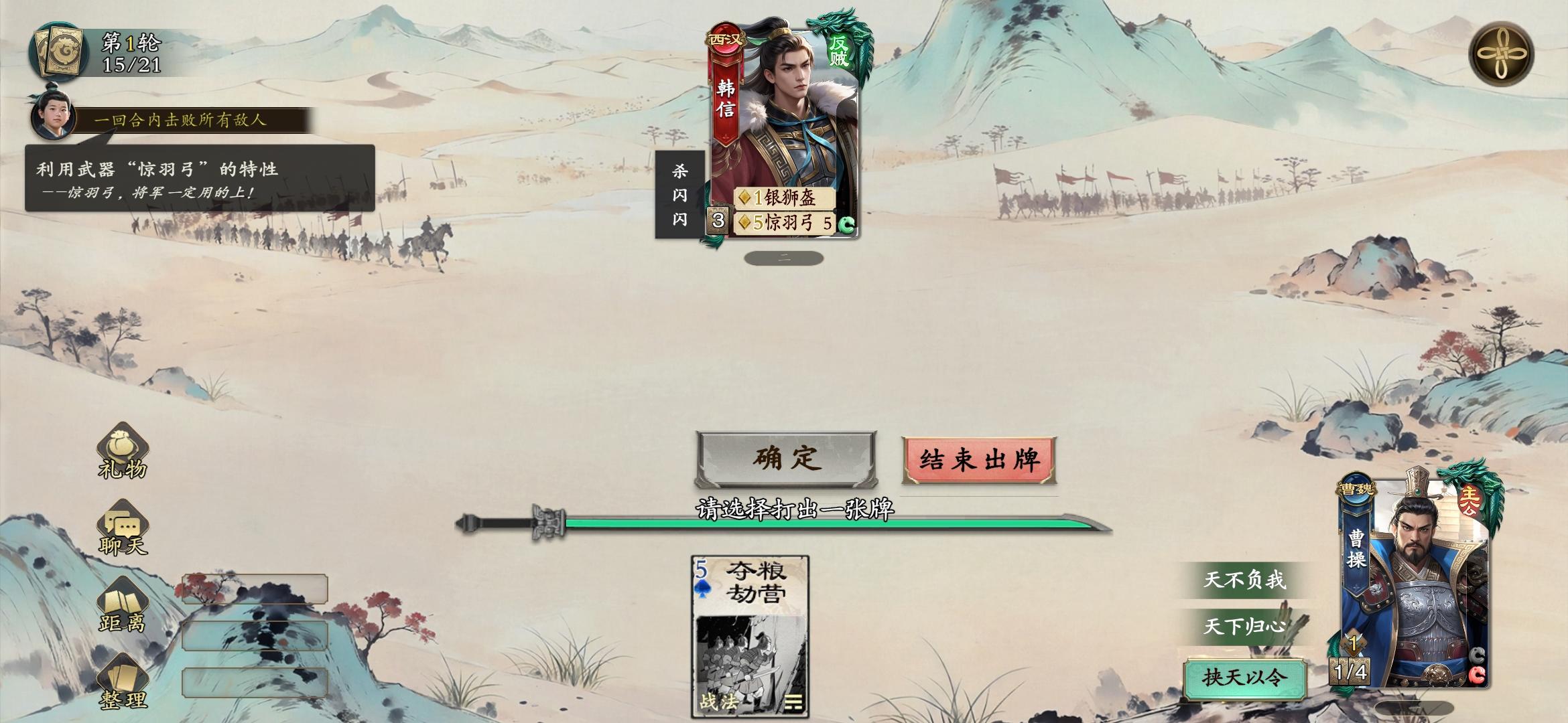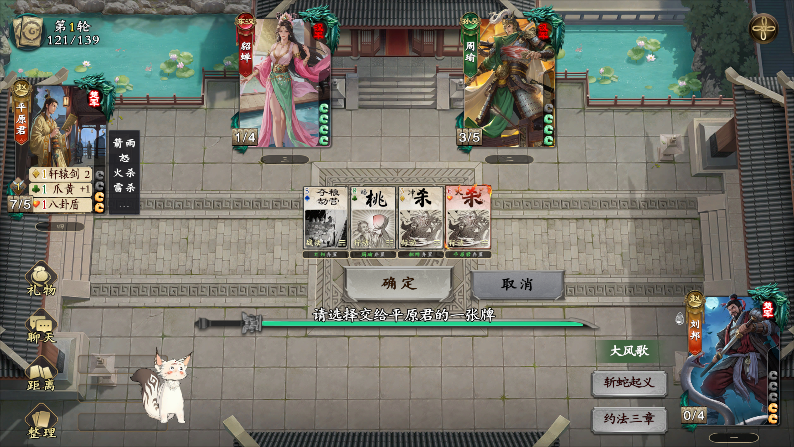 平原君的斩笑立信给了刘邦一张牌,恰好那张牌是五点触发大风歌,使用之后会需要再给牌给平原君但是我的牌丢完了没办法给,直接卡死了#